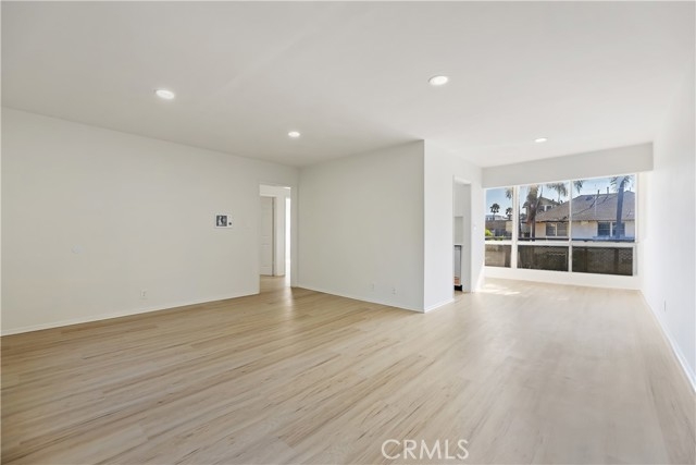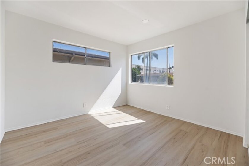 This stylish Long Beach condo offers a private courtyard entry and a bright, welcoming interior. A large wall of glass picture windows fills the living room with natural light, complemented by flush-mount lighting and light-colored luxury plank flooring throughout. An additional panel of windows in the dining area provides views of the neighborhood’s palm trees, while a kitchen serving window makes entertaining easy. The remodeled kitchen features crisp white cabinetry, sleek black and stainless steel appliances, a stainless steel double sink with a high-arc faucet, and quartz counters. The spacious primary suite offers two full-length mirrored wardrobe closets and direct access to its beautifully updated ensuite bathroom with glass-door walk-in shower and tastefully tiled surround, new fixtures, and quartz-topped vanity. A secondary bedroom also includes mirrored wardrobe doors, providing abundant storage. The remodeled hall bathroom includes a new tub/shower enclosure with glass shower doors, quartz counters, new floors, and modern fixtures. Raised panel doors and thoughtful finishes enhance the home’s fresh appeal. With its stylish updates, natural light, and functional design, this condo combines comfort with a desirable location. With a remarkable walkability score of 94 you are sure to enjoy the local shops, boutiques, and restaurants, and it's very bikeable too with a score of 86. Enjoy nearby attractions like the waterfront and the brand-new Modern Civic Center. With endless activities and strong rental potential. Commuter-friendly with the convenient Metro Blue Line and easy freeway access. All this for an affordable price. See it today!