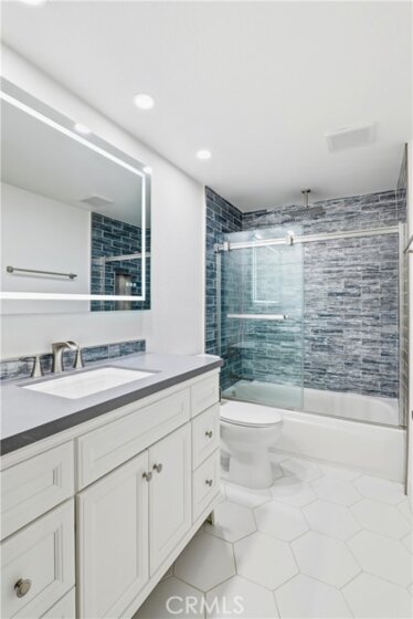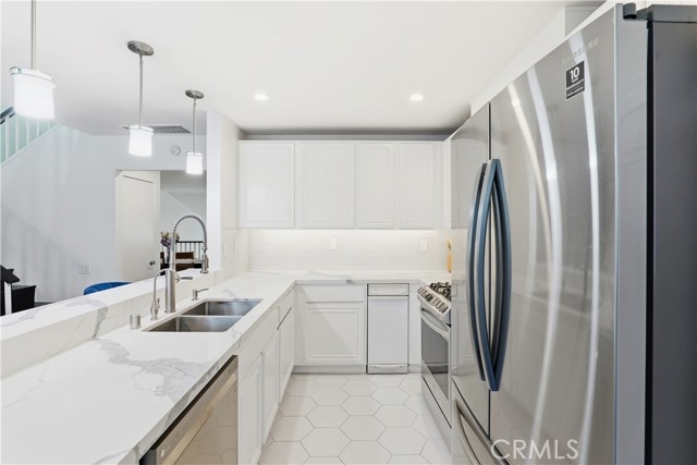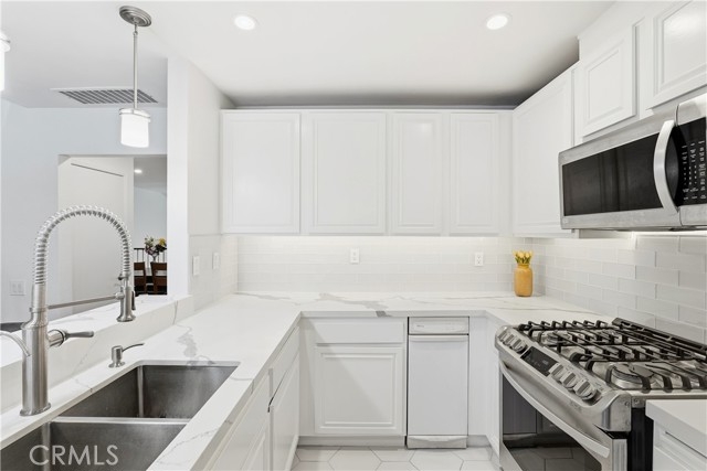 Welcome to this Beautifully Remodeled 3 Bedroom & 2.5 Bathroom Townhome with a Primary Bedroom & Bathroom in the Coveted Gated Community of The Fountains. The home is Multi-Level with close to 1900 Sq Ft of spacious living with Vaulted Ceiling at Living Room and All Bedrooms for that Open Feel. Walk-In Closets at Primary Bedroom & one of the Bedrooms with Extra Attic Storage Space. Kitchen has Quartz Countertops with Soft-Close Cabinets & Drawers, Lighting Underneath Cabinets, Family Room by Kitchen, & Formal Dining Area. Bamboo Wood Floors & Recessed Lighting throughout the home with Upgraded Dual Paned Windows & Pull Down Blinds. Central AC & Heat to cool & warm you when needed, Central Vacuum System for easy cleaning, spacious attached 2 Car Garage with Direct Access to Inside, Laundry at Garage, with paid off Puragain Water Filtration System for a clean & energizing hydration. All 3 bathrooms has been upgraded with Quartz Countertops, Designer Tile Floorings, and beautifully designed Mirrors, Shower & Bathtub Tile Walls. Outside Patio by Living Room. The home is ideally situated close to CSULB, Los Altos Shopping Center, Restaurants, Entertainment, & Freeways. This community boasts Fountains, Swimming Pool & Spa, Club House, Tennis/ Pickleball Court for your Entertainment, & Plenty of Guest Parking. Make this your home today!