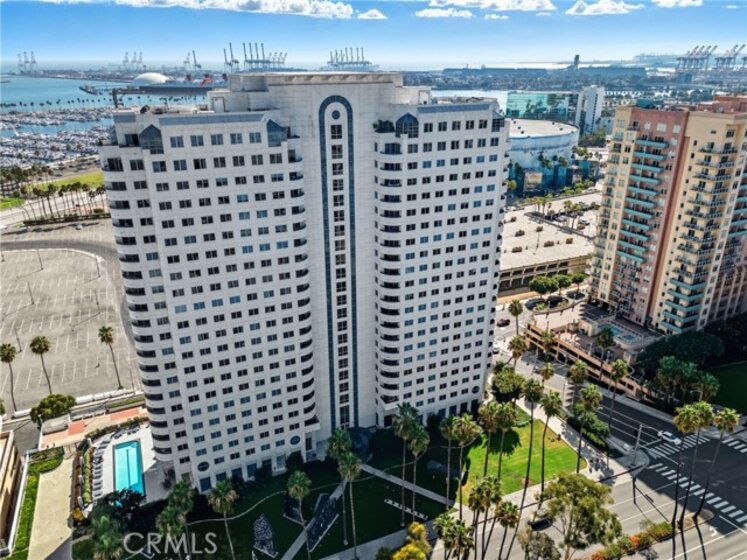 Experience the ultimate in modern coastal living with this stunning 18th-floor luxury condominium at the prestigious Harbor Place Tower in Long Beach, California. This turn-key, high-rise residence offers unobstructed views of the Pacific Ocean, the iconic Queen Mary, and even a front-row seat to the Long Beach Grand Prix—all from your private balcony. Inside, you'll find two spacious bedrooms and two fully remodeled bathrooms, featuring floor-to-ceiling marble that exudes elegance. The open-concept layout is perfect for entertaining, complete with new flooring throughout and a sleek, stainless steel appliance package in the kitchen designed for the modern host. Enjoy the convenience of in-unit laundry tucked away in a closet, central air conditioning, and two assigned parking spaces. Residents of Harbor Place Tower also enjoy resort-style amenities, including a pool, spa, sauna, fitness center, conference room, and 24/7 security for peace of mind. Located just steps from Shoreline Village, the Beach, the Terrace Theater, Long Beach Convention Center, The Pike, and Pine Avenue’s vibrant restaurants and nightlife, this condo places you in the heart of the Southern California lifestyle. Whether you're soaking in the sunsets over the ocean, watching sailboats glide by the harbor, or taking in the dazzling city lights at night—this is beachside high-rise living at its finest.