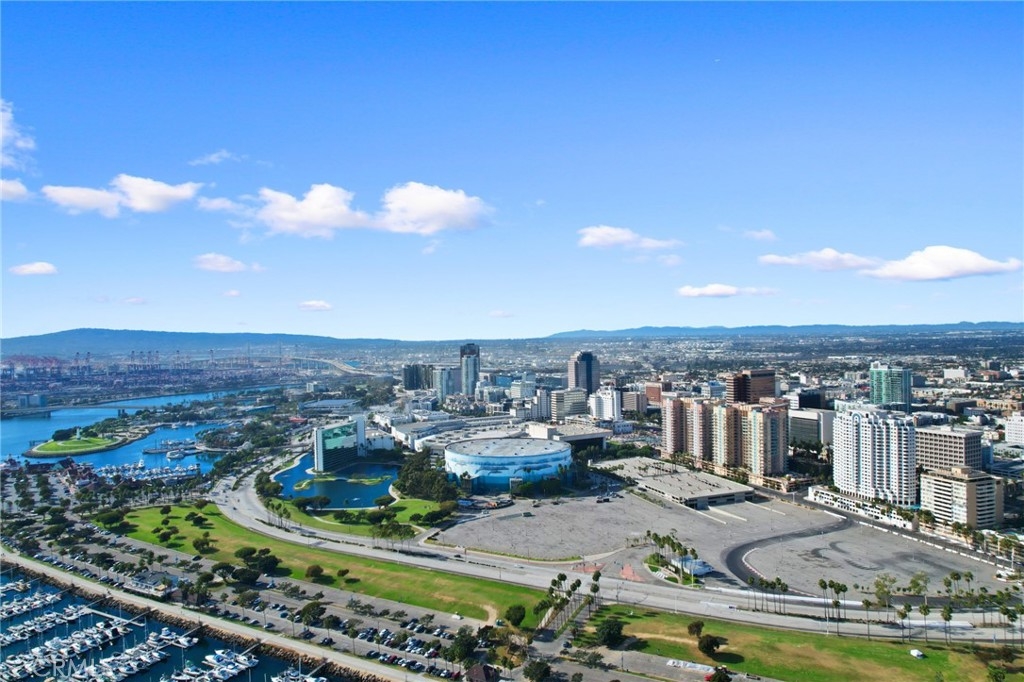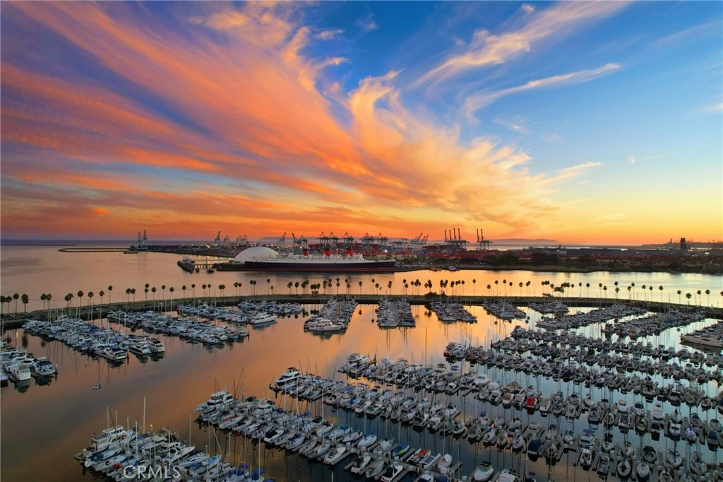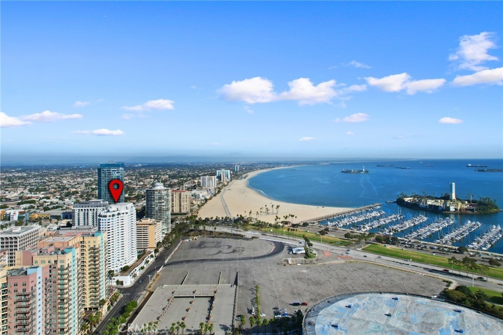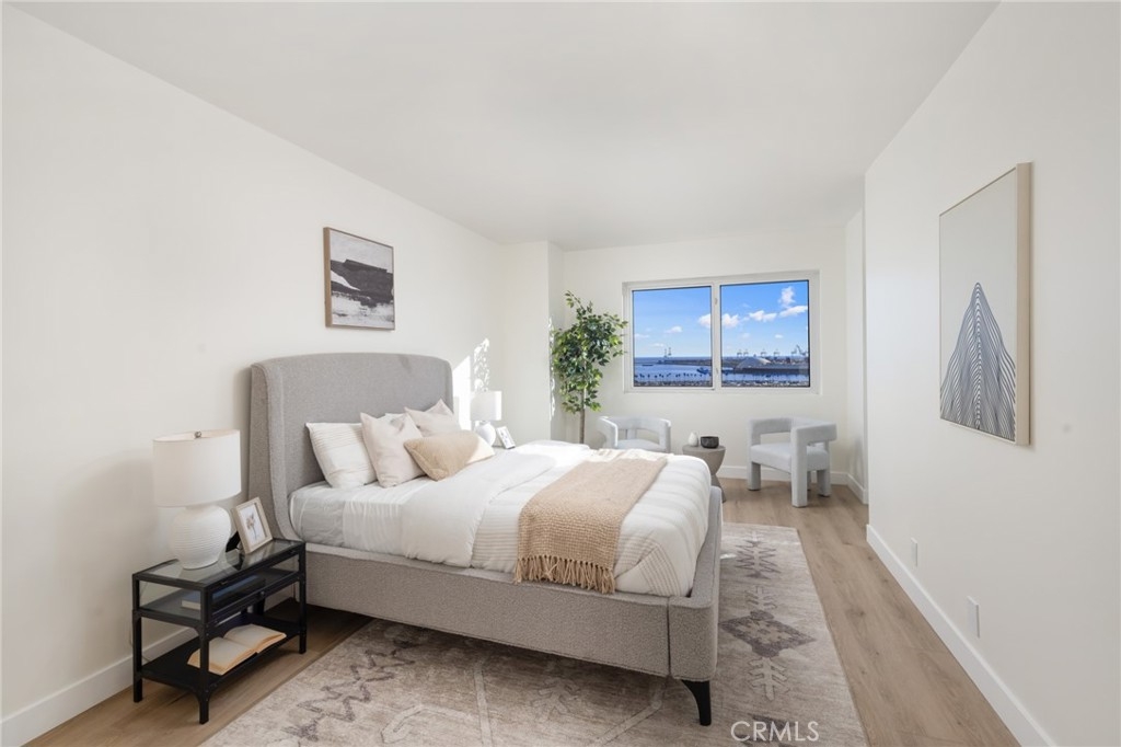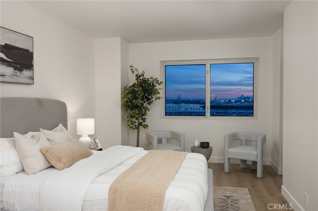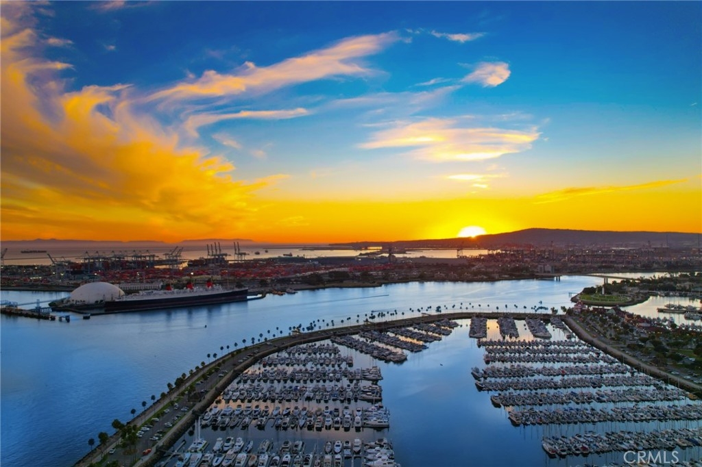 (Back on market! not due to any fault of the home) Enjoy breathtaking panoramic views from this highly updated 2 bedroom 2 bath luxury condo. One of the sought after (05) units with arguably the best views in the complex. Upon entering you are greeted by a sunlit interior with crisp white tones, warm white oak colored flooring and a modern aesthetic. Whip up delectable meals in the chefs kitchen complete with new Stainless steel appliances, handsome thin border grey shaker cabinets and designer picket tile backsplash. Enjoy waking to ocean views in the spacious primary suite, featuring a large walk in closet, with highly updated bath, oversized tile walk in shower complete with premium brushed bronze hardware. The second bedroom also features ocean views with a fully updated interior. Other features include in unit washer & dryer HVAC, Rare SIDE BY SIDE PARKING (Not the traditional tandem parking spots). Harbor Place Tower is a modern 23 story building in the heart of downtown Long Beach with luxury amenities, including resort style heated pool, spa, saunas, modern fitness center, ping pong, bike storage, and 24/7 on-site security. Just walking distance to the beach, harbor, Shoreline Village, Terrace Theater, convention center, the Pike, Pine Ave restaurants, nightlife and so much more! Parking easy with 2 full sized side by side parking spaces and 80 guest parking spaces!