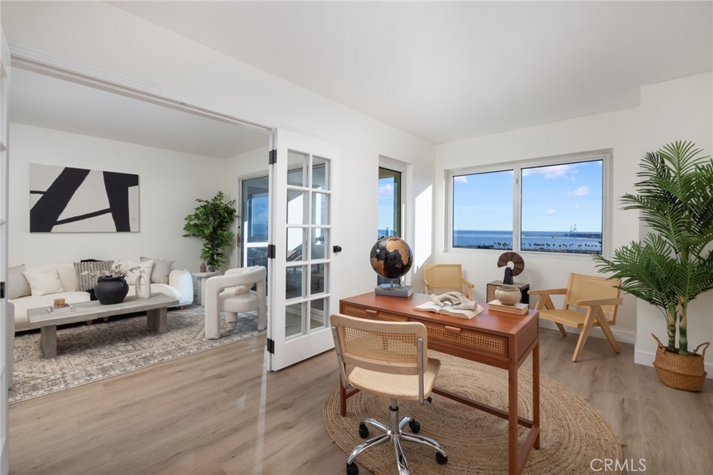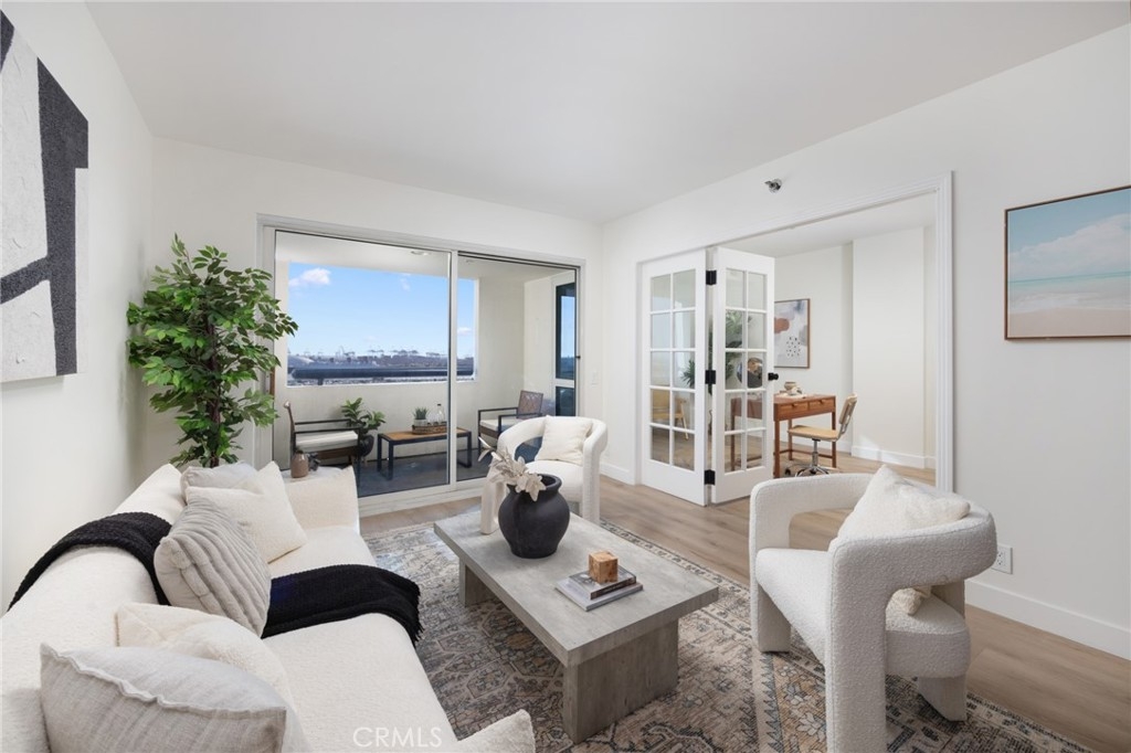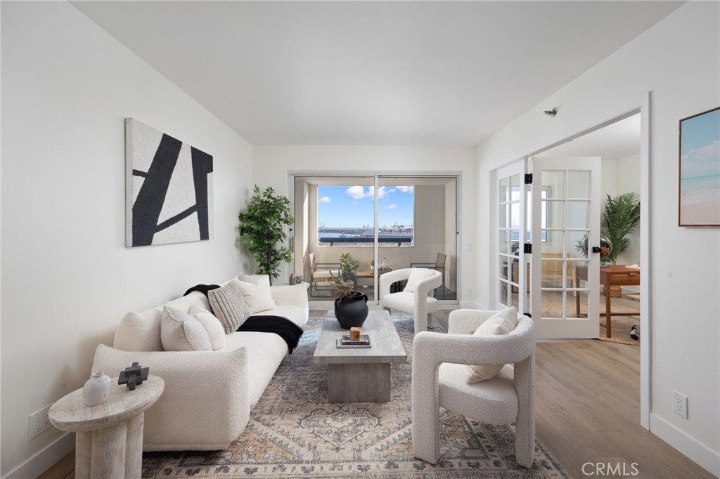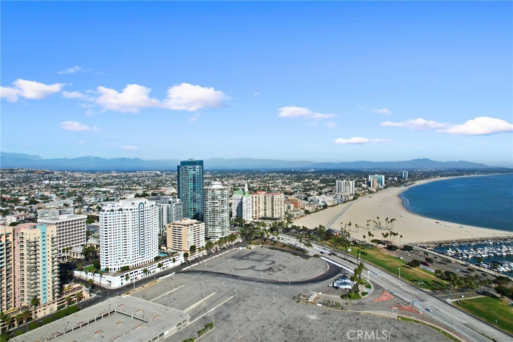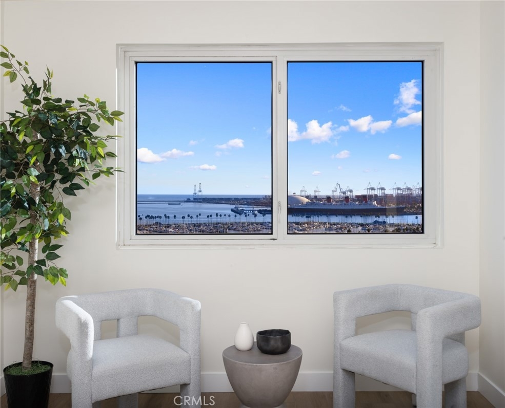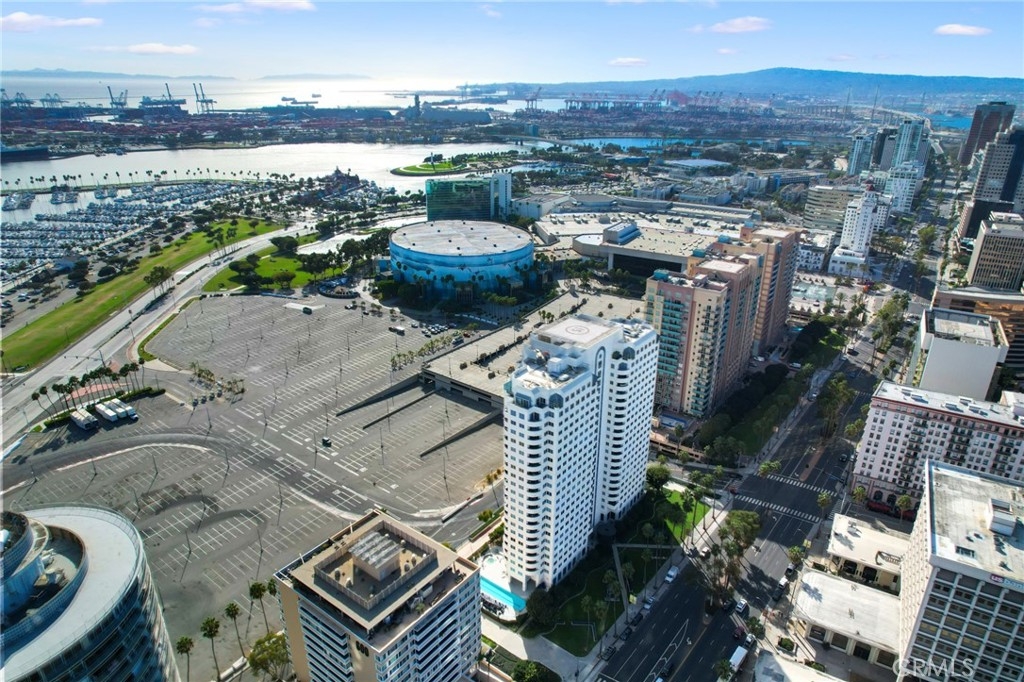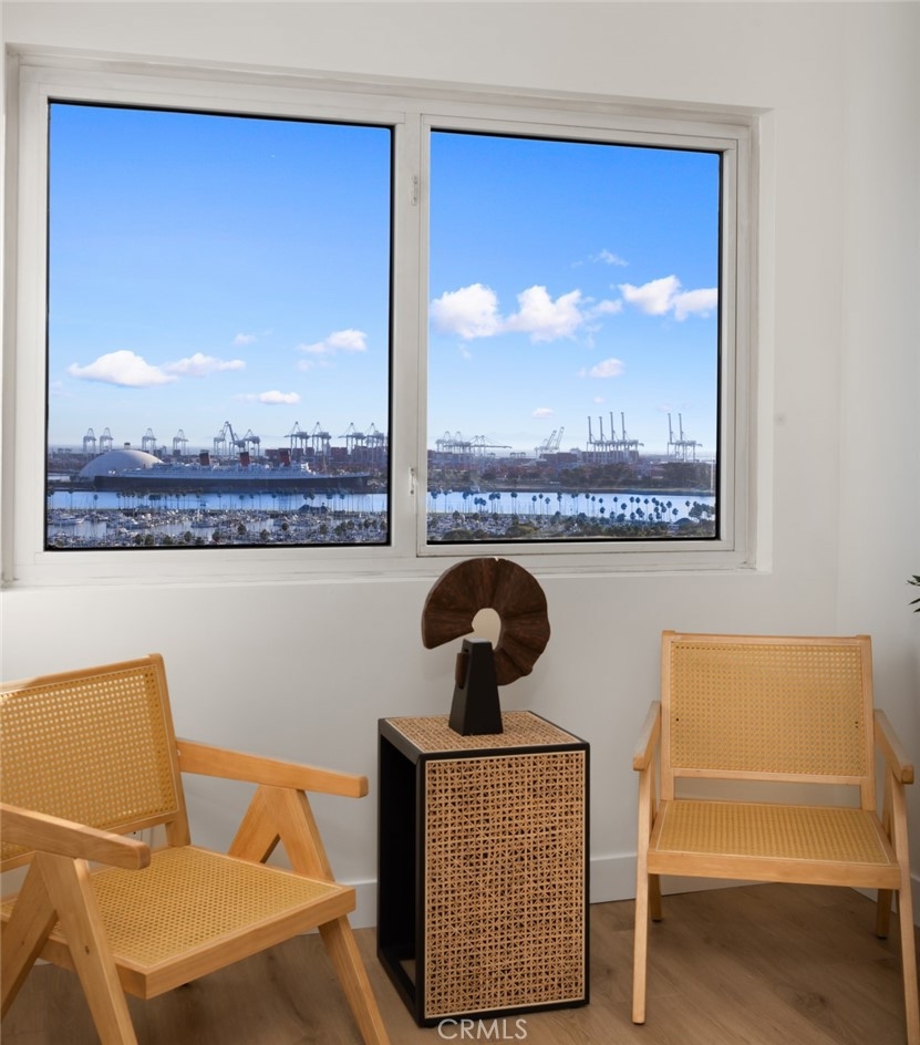 (Back on market! not due to any fault of the home) Enjoy breathtaking panoramic views from this highly updated 2 bedroom 2 bath luxury condo. One of the sought after (05) units with arguably the best views in the complex. Upon entering you are greeted by a sunlit interior with crisp white tones, warm white oak colored flooring and a modern aesthetic. Whip up delectable meals in the chefs kitchen complete with new Stainless steel appliances, handsome thin border grey shaker cabinets and designer picket tile backsplash. Enjoy waking to ocean views in the spacious primary suite, featuring a large walk in closet, with highly updated bath, oversized tile walk in shower complete with premium brushed bronze hardware. The second bedroom also features ocean views with a fully updated interior. Other features include in unit washer & dryer HVAC, Rare SIDE BY SIDE PARKING (Not the traditional tandem parking spots). Harbor Place Tower is a modern 23 story building in the heart of downtown Long Beach with luxury amenities, including resort style heated pool, spa, saunas, modern fitness center, ping pong, bike storage, and 24/7 on-site security. Just walking distance to the beach, harbor, Shoreline Village, Terrace Theater, convention center, the Pike, Pine Ave restaurants, nightlife and so much more! Parking easy with 2 full sized side by side parking spaces and 80 guest parking spaces!
