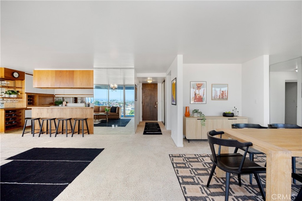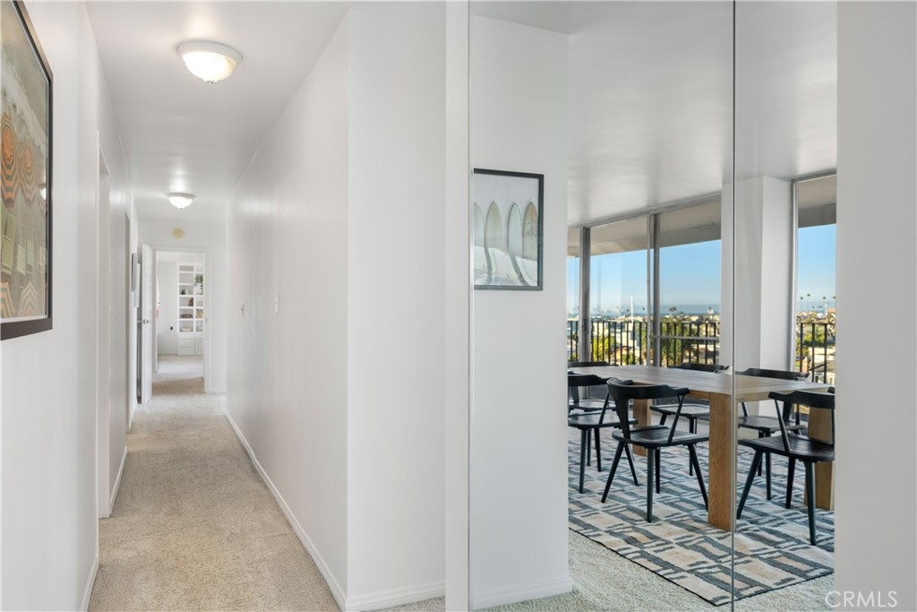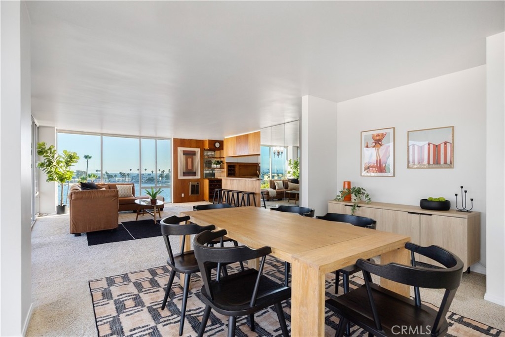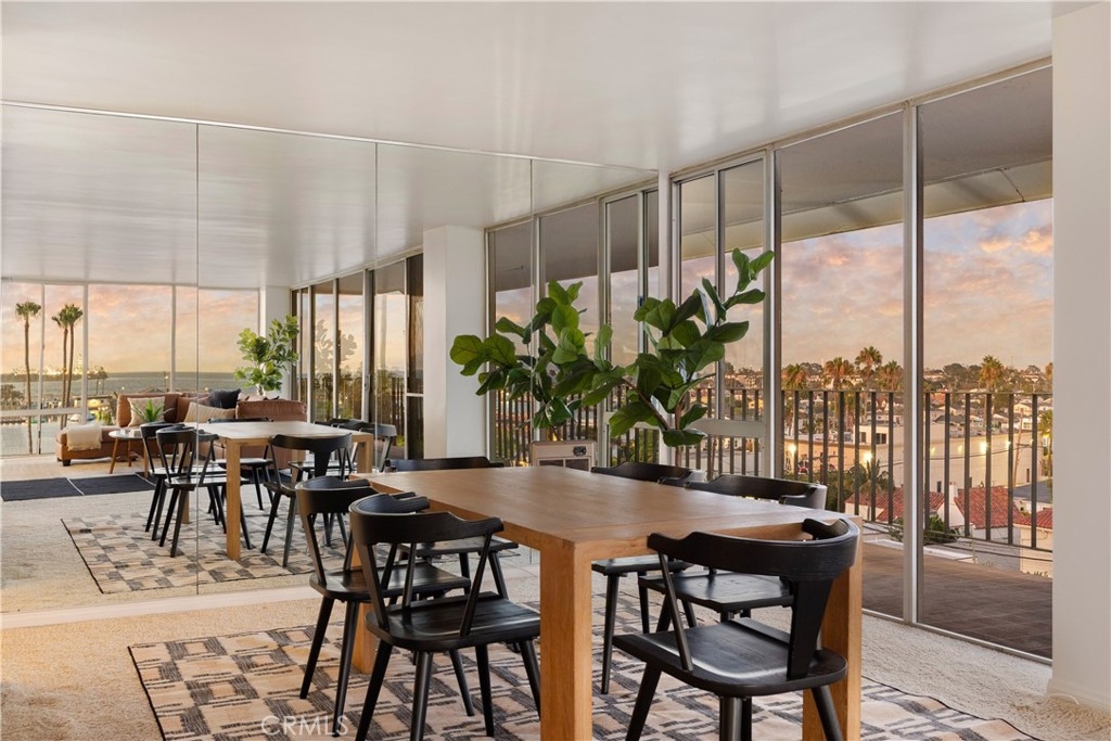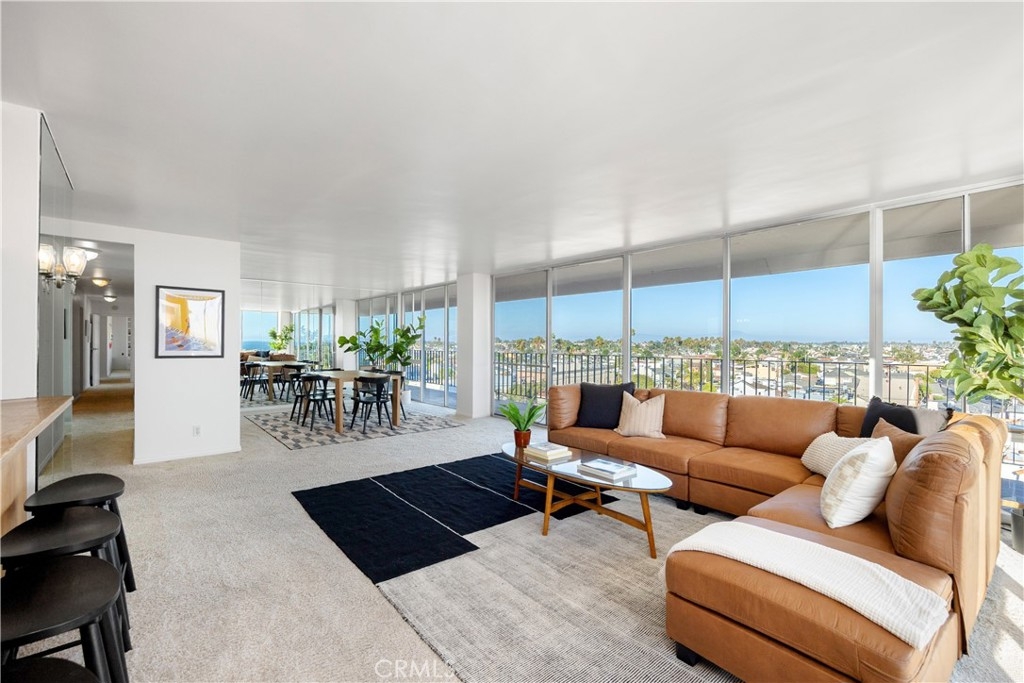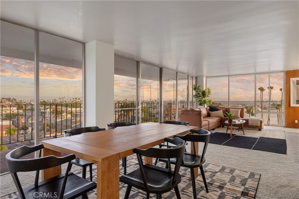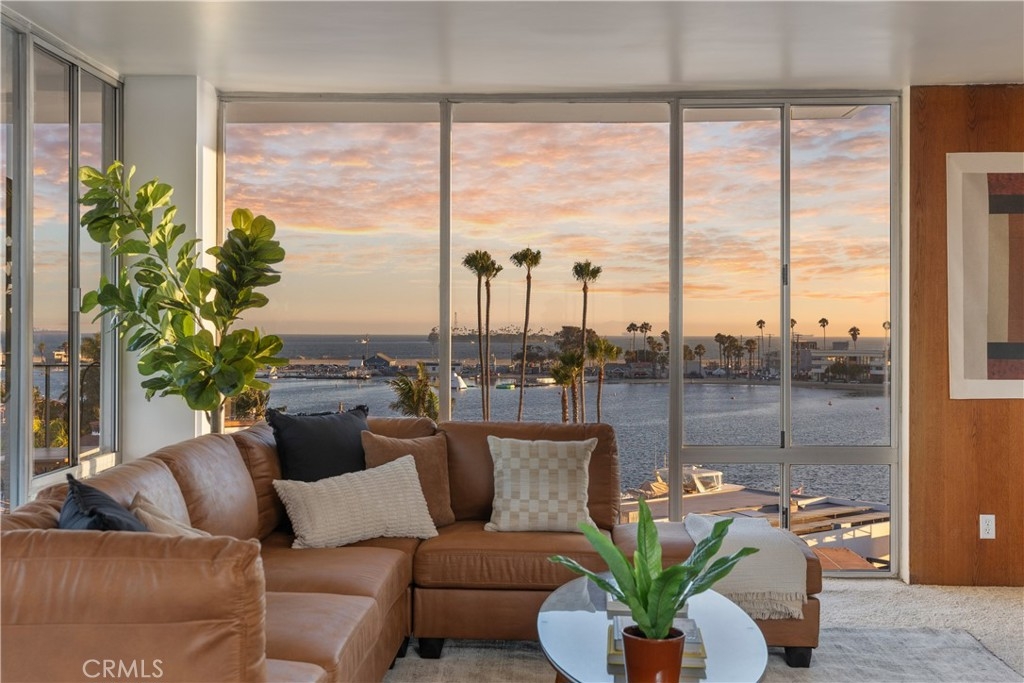 Welcome to 5400 The Toledo, designed by renowned architect Hugh Gibbs and home to one of the rarest and most incredible oceanfront condos you may ever see on Naples Islands. Unit 601/603 is not only expansive by way of sheer square footage, but also boasts one of the most spectacular panoramic views all of the Long Beach coast has to offer. Pulling into one of this condo's two side by side gated parking spaces, you may notice the building's consideration and care which carries from the secured parking garage, into the 24 hour secured lobby, continuing all the way from the elevator to the front door of unit 601 at the end of the hall. Walking inside, you'll more than likely feel a blast of cool ocean air before you notice the reflection in the hall closet of what's to come. Although the kitchen is to your right and a hallway to your left, it's hard not to observe what's directly in front of you. Walking into the living room adjoined by a formal dining area, you're greeted with floor to ceiling 180 degree views from Catalina to the Mountains. When you finally gather yourself and comprehend the impressiveness of what you're seeing, you can head into the galley kitchen accompanied by a bar top with potential for hosting and serving alike. Wrapping back around, you'll find yourself looking down a hall which leads you past 3 guest bedrooms and 3 guest bathrooms, bookmarked with one of the largest and most expensive condominium en-suites in 90803. Aside from the perks of over 2200 square feet, extra storage, guest bedrooms and additional parking, having two units turned into one also offers the perks of a walk-in primary closet with its own laundry hook ups, space for an additional refrigerator with water line, and bedside views from the coast of Long Beach all the way to Laguna. Finding a rarity like this would be a once in a lifetime find in itself, but adding the 30 foot dock into the equation is where things get just that much more special. Whether you plan to walk to the restaurants, award winning schools, or take the boat out for a cruise, coming back home everyday to arguably the best view in town could be just that easy.