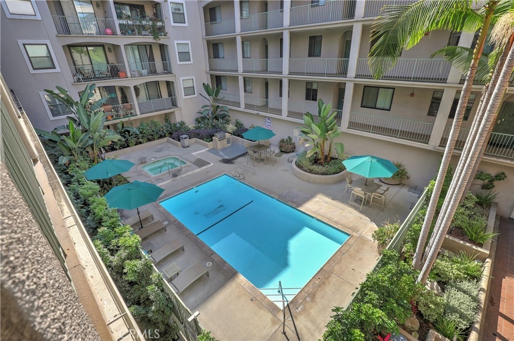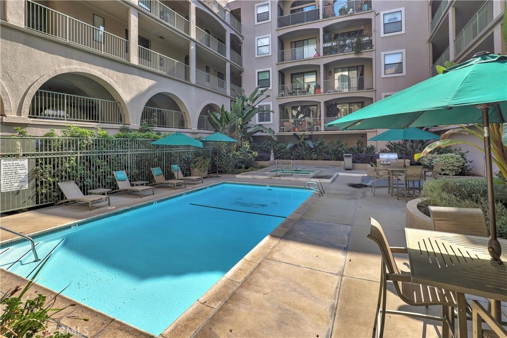 Welcome to this 2-bedroom, 2-bathroom condo located in a quiet, gated community. The home features a comfortable living room with a cozy fireplace and access to a private balcony—perfect for relaxing or enjoying your morning coffee. The primary bedroom includes an en suite bathroom, and there’s a convenient in-unit laundry closet with a stackable washer and dryer. The community offers great amenities, including a pool, spa, barbecue area, and a rooftop gathering space to enjoy with friends and neighbors. Conveniently situated just down the street from shopping, dining, and everyday conveniences, this condo offers both comfort and convenience in an ideal location.