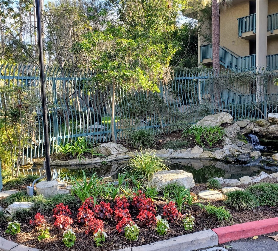 Welcome to Stoneybrook Villas... with it's beautiful park-like grounds, babbling brooks, lush green landscaping, gazebos, and so much more. This 2 bedroom 2 bath unit is on the ground floor and boasts an extra large outdoor patio to enjoy with family and friends or maybe just a quiet moment to read or reflect. The exterior gate on Bellflower that is within close proximity to the unit makes it easy to walk up to the intimate nearby shopping center. This complex also has ammenities galore including pools, spas, sauna, recreation room, billiards table, a tv room, fitness room, tennis court, and BBQs. So come on... this is your opportunity to use your creative juices to build a space that reflects who you are and make it your own!