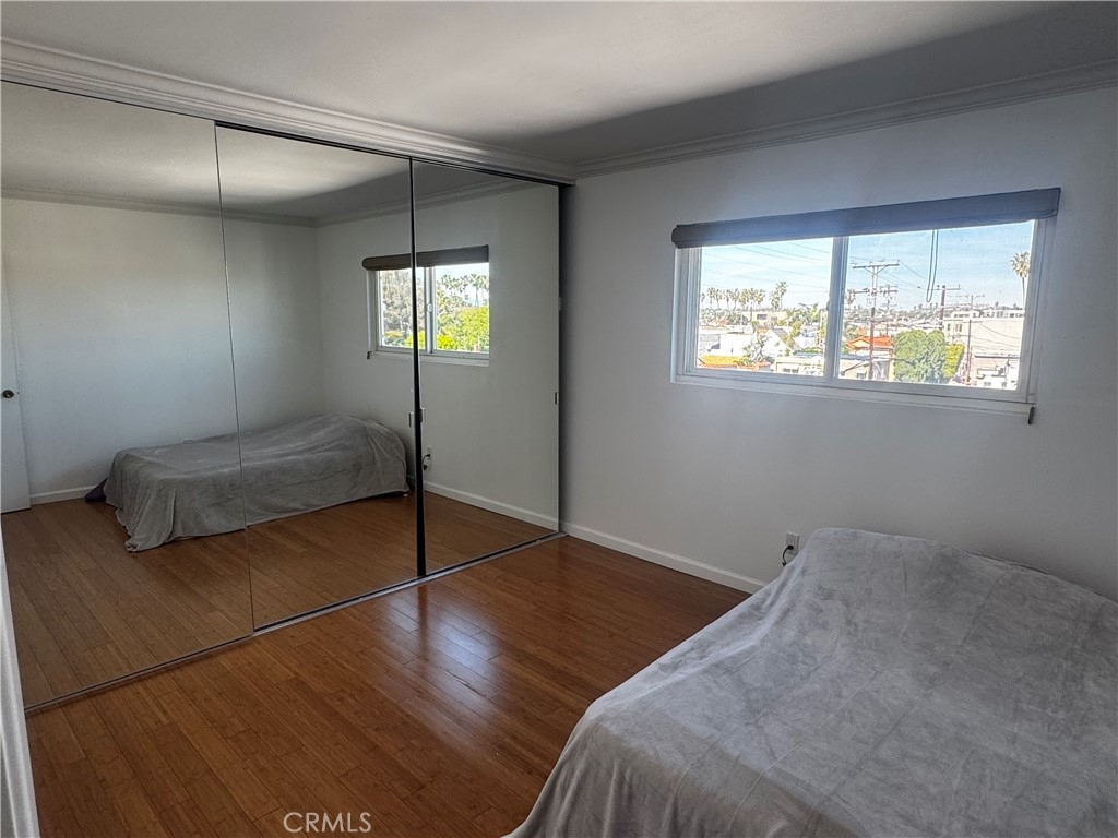 Experience coastal living on Naples Island in this move-in-ready 1-bedroom, 1-bath condo with an unbeatable location near shopping, dining, entertainment, and the vibrant Belmont Shore lifestyle. This top-floor corner unit offers abundant natural light and views from every room, including peekaboo water views of Marine Stadium and the marina. Downtown Belmont Shore is approximately one mile away, along with the Sunday Farmers Market and 2nd & PCH. Rosie’s Dog Beach and downtown Seal Beach are both under two miles, making it easy to walk, bike, or drive to everything you need. Inside, the home features bamboo flooring, crown molding, dual-pane windows, and fresh paint throughout. The spacious bedroom includes a wall-to-wall mirrored closet. The kitchen is equipped with stainless steel appliances and opens to a bright living area that leads to a generously sized patio. Residents enjoy a common rooftop deck with panoramic 360-degree views of Long Beach and surrounding areas — the perfect spot to watch the Big Bang on the Bay and New Year’s Eve fireworks. Additional highlights include ample street parking, a deeded subterranean assigned parking space with extra storage, and a well-maintained building with only fifteen units. This condo is not only elegant, it also represents a desirable way of life.