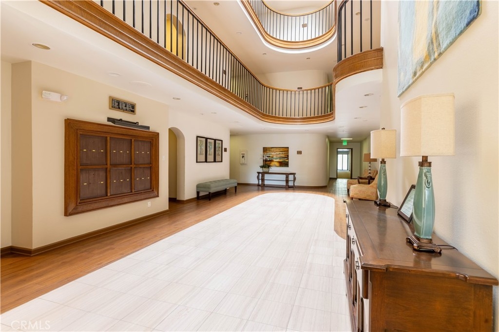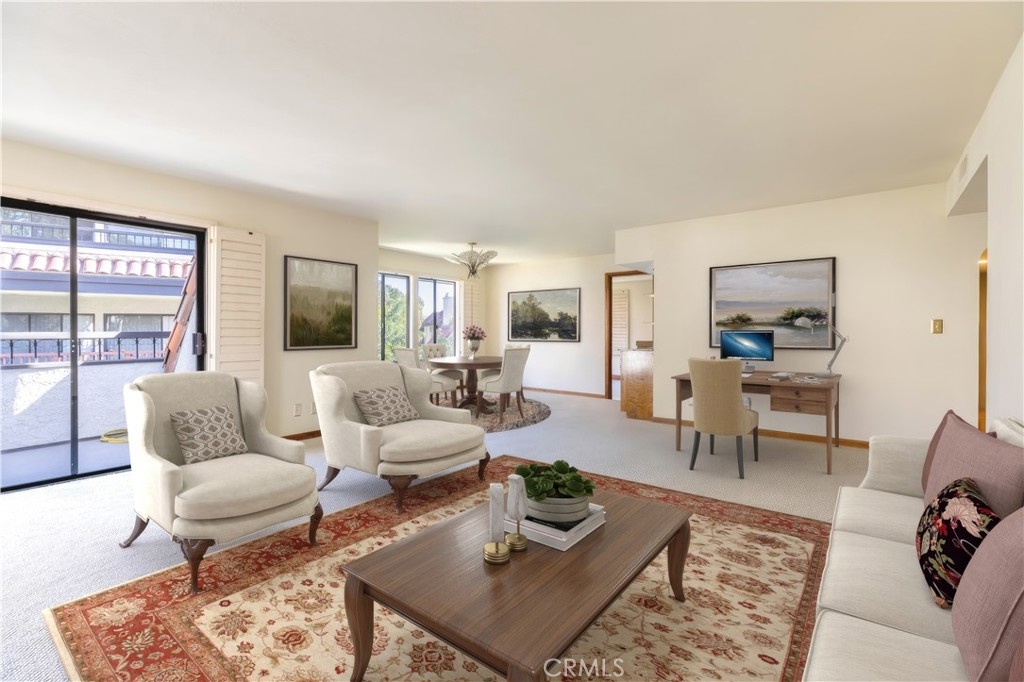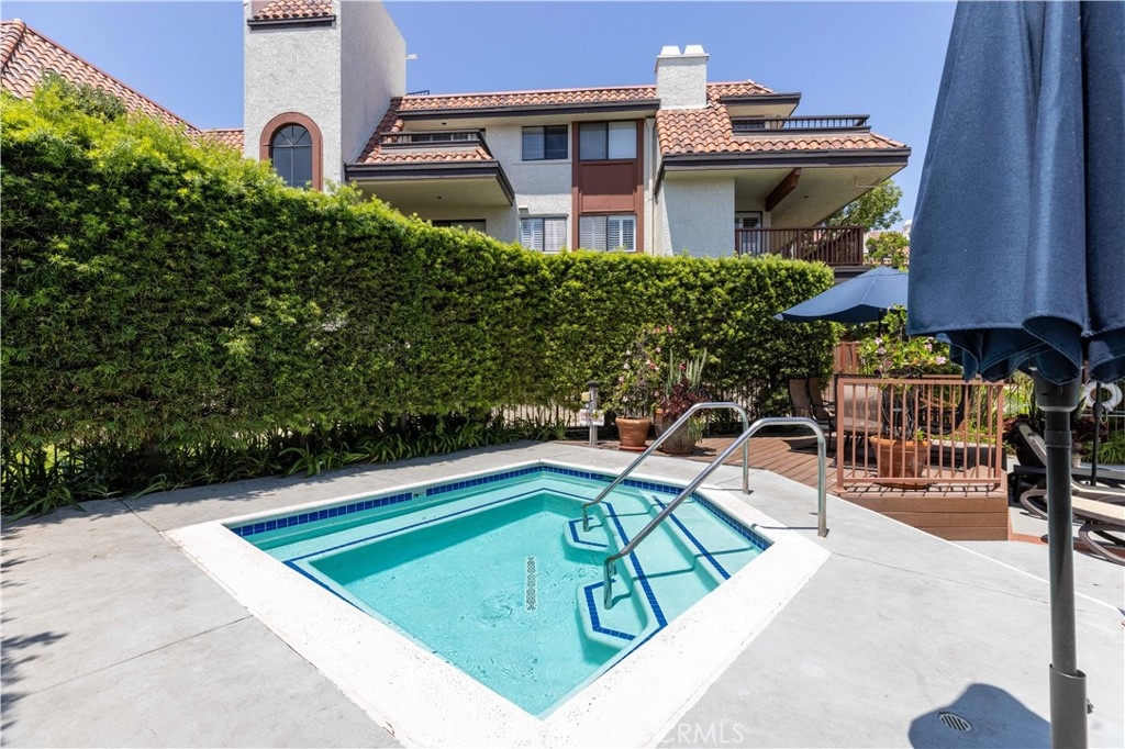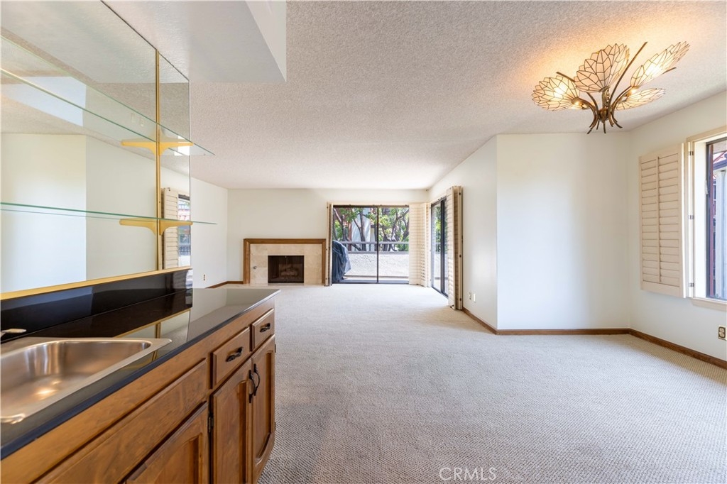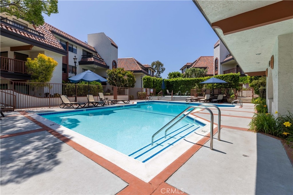 Desirable End unit TOP Floor with NO shared side walls, (separated from other units with a hallway) in a Guard Gated haven. Recently painted and ceilings retextured. This 3 Bedrooms sprawling home of over 1845 sq/ft was built with luxury living in mind. It is full of light with large windows and sliding doors with wrap around balcony looking onto treetops. The double door entry and a spacious foyer are inviting and lead to a large living room with a fireplace. The very spacious kitchen has ample counter space as well as lots of storage. The sunny breakfast nook is a nice bonus. Wood shutters are covering each window and sliding door. A primary bedroom suite offers a spacious room, access to a private balcony, two large closets, a dressing area with dual sink vanity and a separate bathroom with newer tub and toilet. There are two additional bedrooms both large, one with built-ins and could be a perfect office or den. Another bonus is very convenient laundry room complete with a sink and storage. This beautiful and pristine guard gated community boasts: Pool, Spa, Tennis and Pickle ball and a clubhouse. A grand lobby in the building has the elevator, mail, trash shoot plus a beautiful sitting area with dramatic skylight. 2 generous parking spots with a storage cabinet in the underground parking garage. Desirable interior location. Easy access to several freeways and minutes to shopping and recreation, CSULB. This is not to be missed.