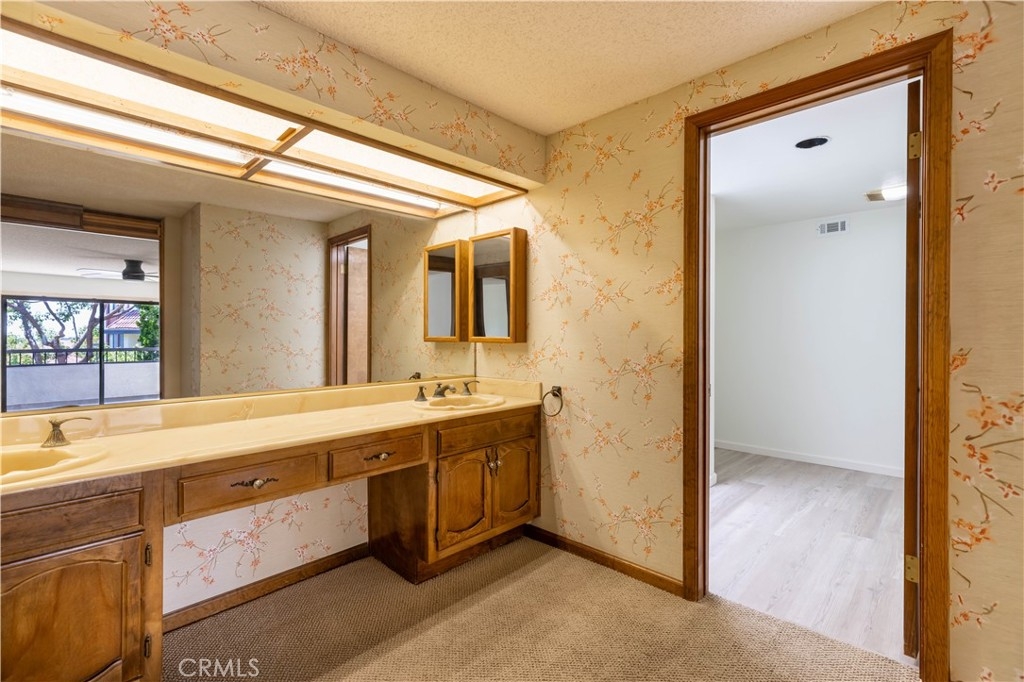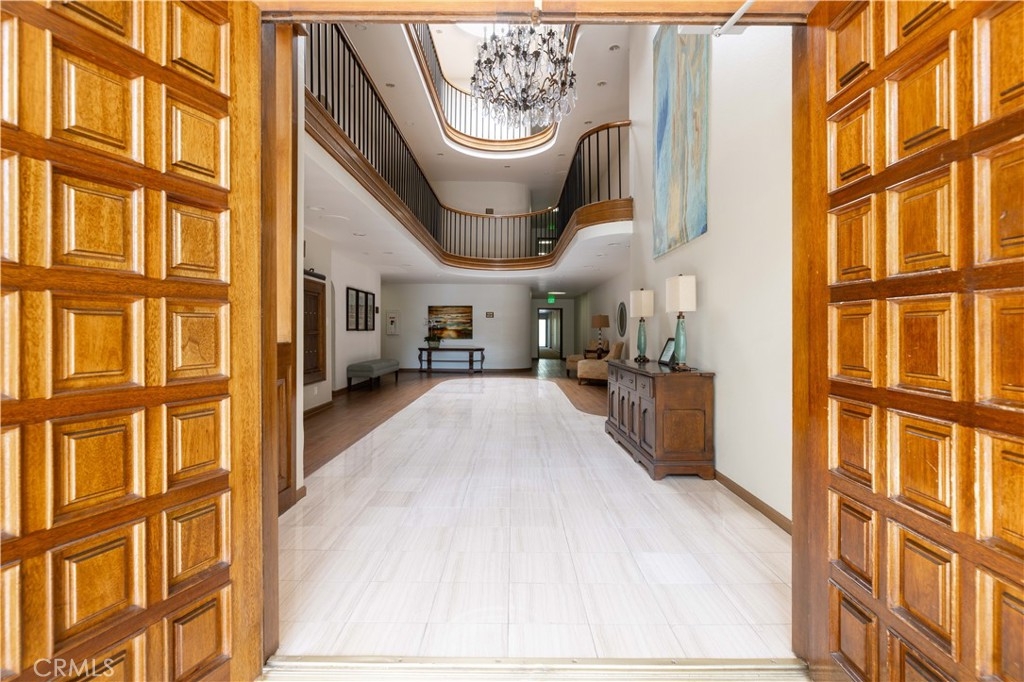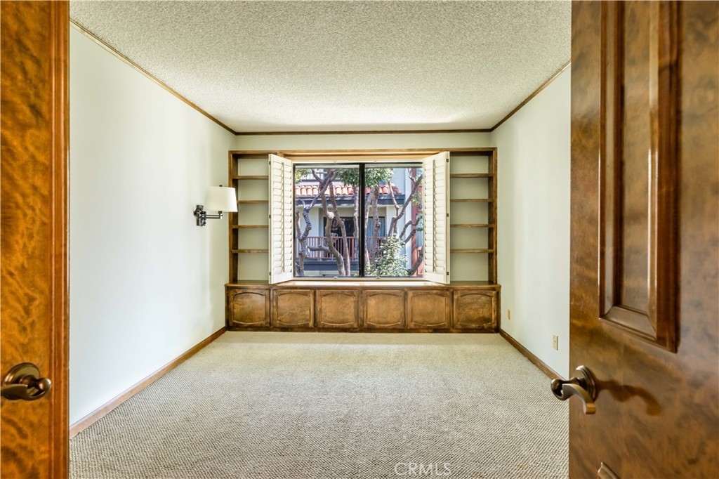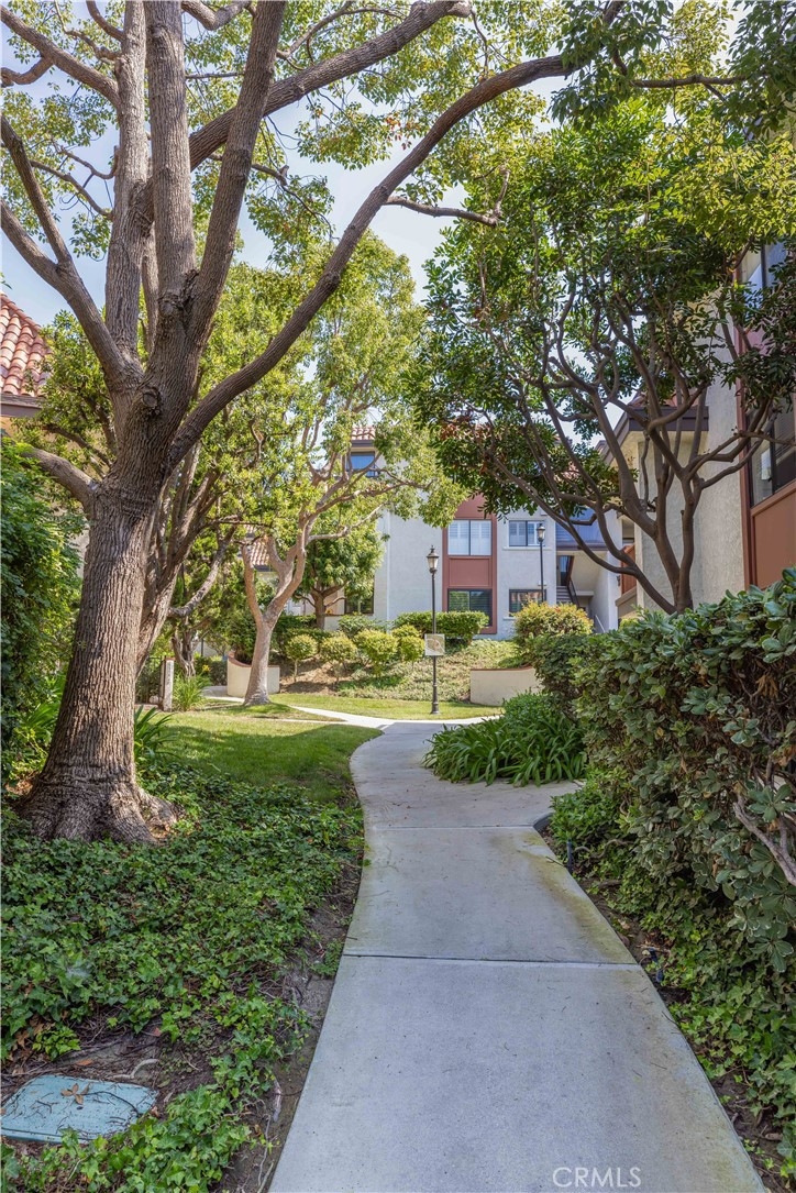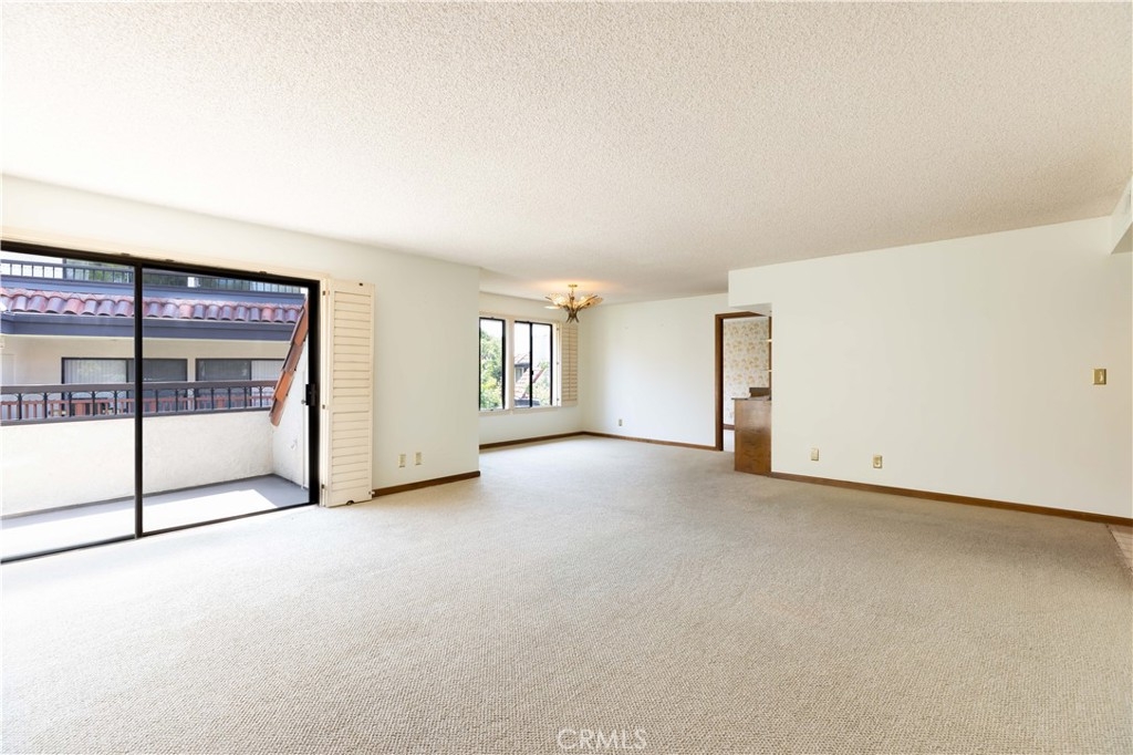 Desirable End unit TOP Floor with NO shared side walls, (separated from other units with a hallway) in a Guard Gated haven. Recently painted and ceilings retextured. This 3 Bedrooms sprawling home of over 1845 sq/ft was built with luxury living in mind. It is full of light with large windows and sliding doors with wrap around balcony looking onto treetops. The double door entry and a spacious foyer are inviting and lead to a large living room with a fireplace. The very spacious kitchen has ample counter space as well as lots of storage. The sunny breakfast nook is a nice bonus. Wood shutters are covering each window and sliding door. A primary bedroom suite offers a spacious room, access to a private balcony, two large closets, a dressing area with dual sink vanity and a separate bathroom with newer tub and toilet. There are two additional bedrooms both large, one with built-ins and could be a perfect office or den. Another bonus is very convenient laundry room complete with a sink and storage. This beautiful and pristine guard gated community boasts: Pool, Spa, Tennis and Pickle ball and a clubhouse. A grand lobby in the building has the elevator, mail, trash shoot plus a beautiful sitting area with dramatic skylight. 2 generous parking spots with a storage cabinet in the underground parking garage. Desirable interior location. Easy access to several freeways and minutes to shopping and recreation, CSULB. This is not to be missed.