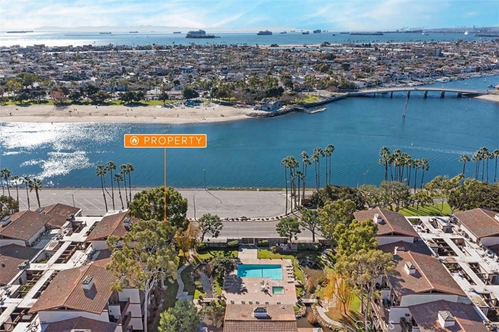Key 16, Top Floor. This is a spectacular location in Marina Pacifica. End Unit offers great View of the Bay, Mothers Beach, Apian Bridge. Watch the boats go by and the lights & sunset reflecting off the water. The unit is upgraded with designer touches throughout. Sand Blasted vaulted ceilings with exposed beams and high windows to let in the daylight. Windows have motorized window shades. Hardwood floors throughout, and en-suite bathroom in master and a powder room for guests. Rock Shower, Italian Marble fireplace, designer cabinetry and top of the line appliances. The pictures and virtual tour show how stunning this unit is. This is a must see! You won't regret it!