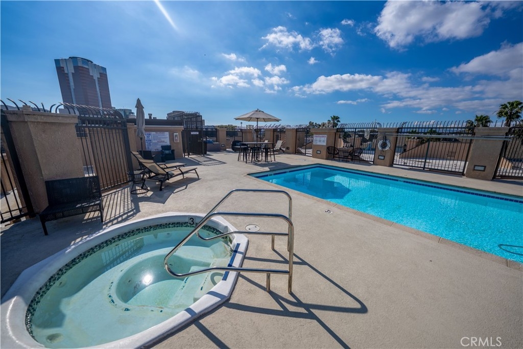 Welcome home to 640 W 4th Street, a rare and well-located one-bedroom, one-bath condo in the heart of Downtown Long Beach. This first-floor unit is conveniently located near the front entrance, offering easy access in and out of the building. One-bedroom residences in this community are seldom available, and this home stands out with an exceptionally large private patio, delivering true indoor-outdoor living that’s hard to find downtown. Inside, the home features a practical and comfortable layout where the kitchen, dining, and living areas connect naturally—ideal for everyday living or casual entertaining. The kitchen is efficiently designed with a clean, functional workspace. The bedroom offers a comfortable retreat, and the bathroom is well-appointed and thoughtfully laid out. The oversized patio is the highlight—perfect for morning coffee, outdoor dining, or creating your own urban oasis. It’s an ideal extension of the living space and a rare feature for a downtown condo. The building offers secured entry, underground parking, and a resort-style rooftop pool, providing both convenience and a relaxing escape. All of this is just moments from Downtown Long Beach’s dining, shopping, entertainment, and nightlife, with easy freeway access and nearby parks.