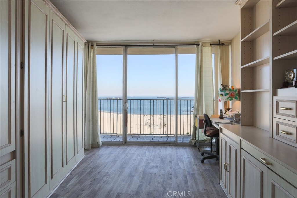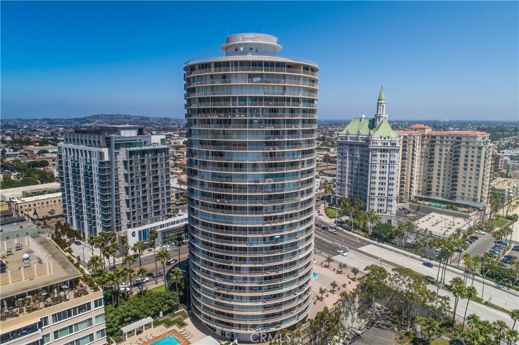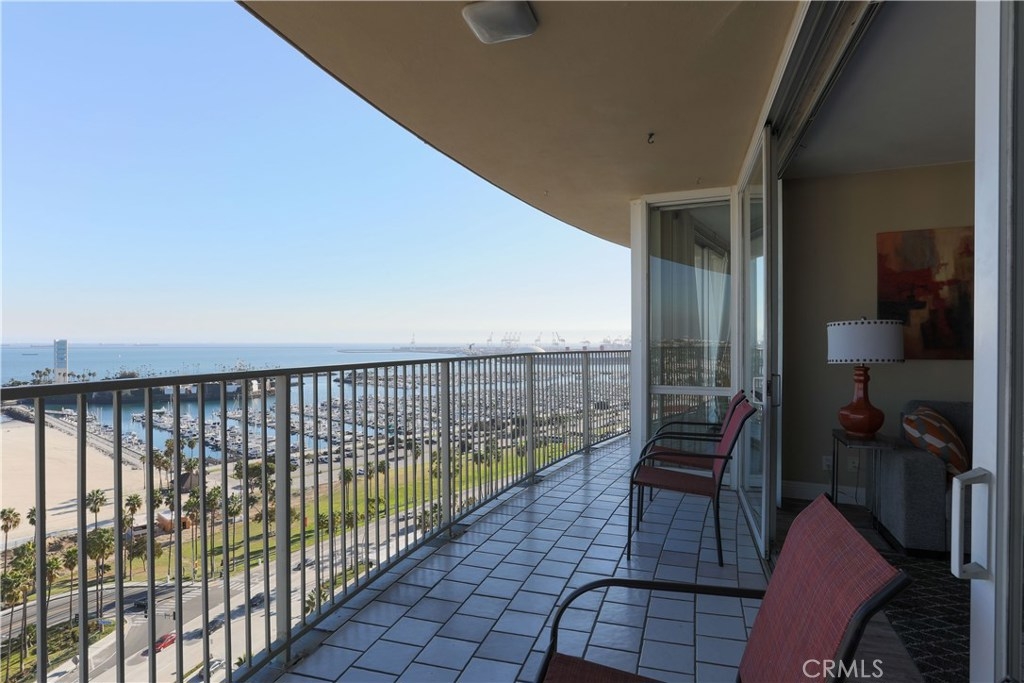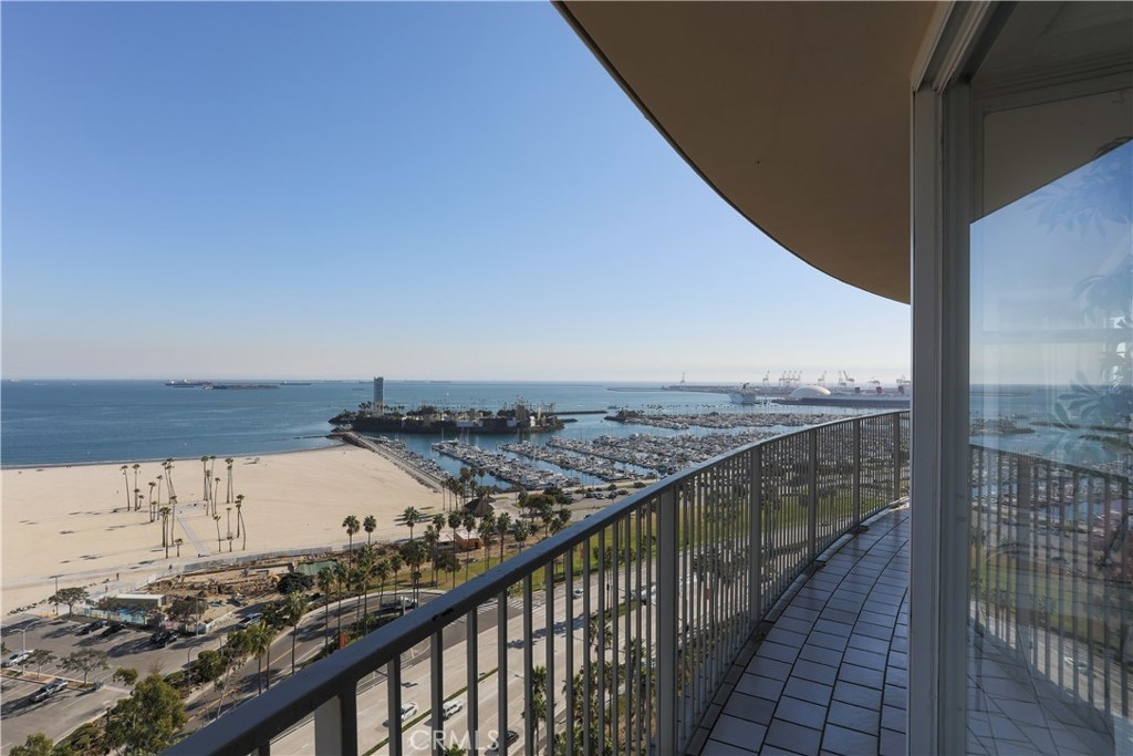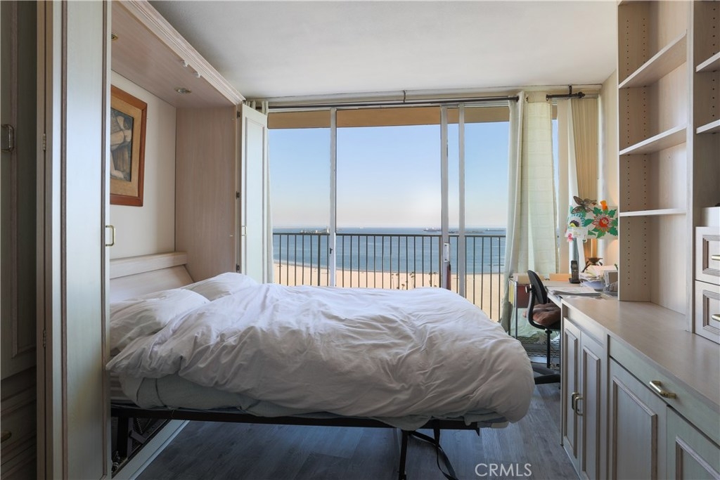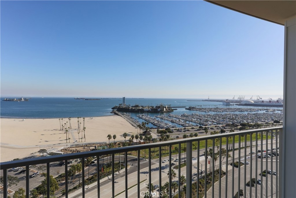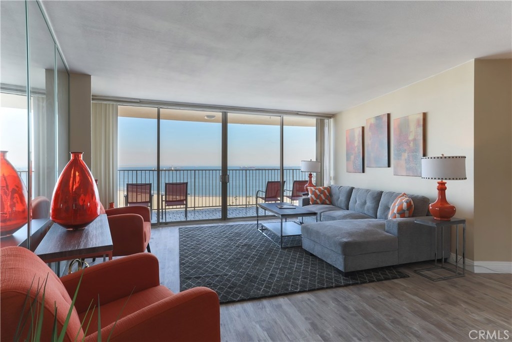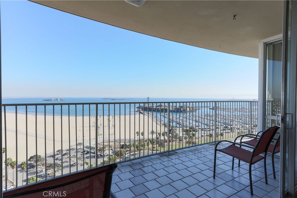 Unobstructed ocean views visible from nearly every spot in this 2 bedroom, 2 bath condo in the iconic International Tower. This home has a bright and open floor plan with fresh paint and brand new laminate floors throughout. Floor to ceiling glass sliding doors in the living room and both bedroom suites give access to the large balcony that wraps around the full width of the unit. The master bedroom features a walk-in closet, updated vanity and a shower/tub combo in the bathroom. The guest bedroom is currently used as an office with a murphy bed, cabinets, and desk all built in. Additional storage and mirrored closets line the hall leading to the guest bathroom. The International Tower features all the modern luxury amenities: 24/7 security and concierge, beautiful pool & spa, outdoor BBQ area, large fitness center, community room with full kitchen and a conference center all on the meticulously maintained grounds. Stackable laundry in the unit and two dedicated parking spots in the controlled access garage. Close to the best dining, shopping and entertainment that Downtown Long Beach has to offer!