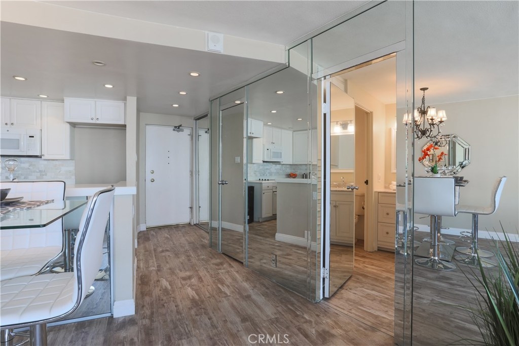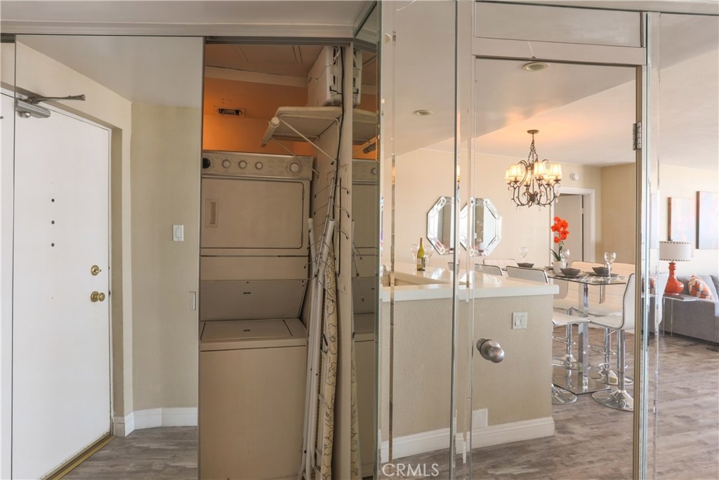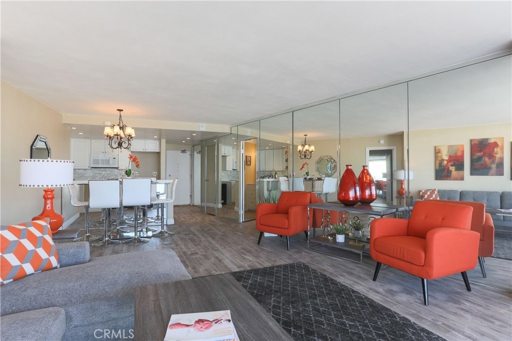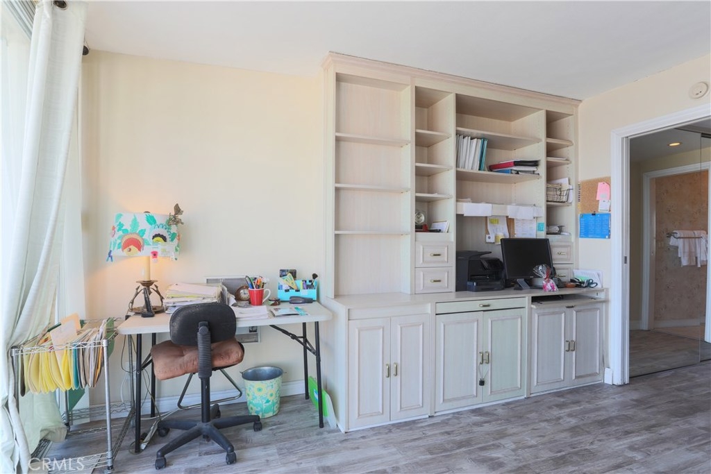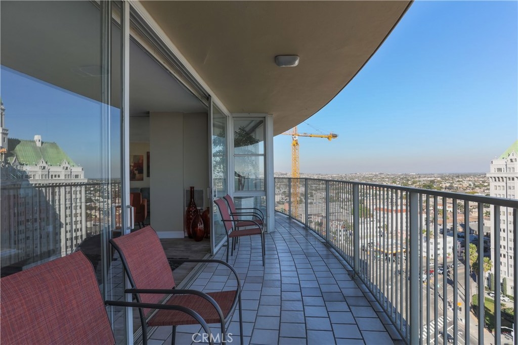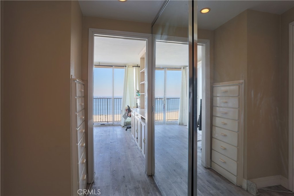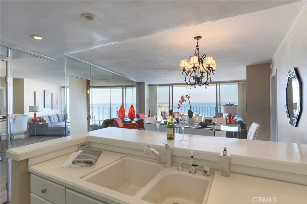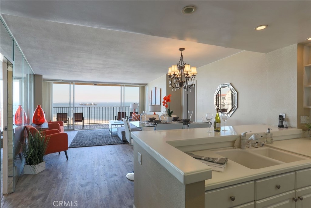 Unobstructed ocean views visible from nearly every spot in this 2 bedroom, 2 bath condo in the iconic International Tower. This home has a bright and open floor plan with fresh paint and brand new laminate floors throughout. Floor to ceiling glass sliding doors in the living room and both bedroom suites give access to the large balcony that wraps around the full width of the unit. The master bedroom features a walk-in closet, updated vanity and a shower/tub combo in the bathroom. The guest bedroom is currently used as an office with a murphy bed, cabinets, and desk all built in. Additional storage and mirrored closets line the hall leading to the guest bathroom. The International Tower features all the modern luxury amenities: 24/7 security and concierge, beautiful pool & spa, outdoor BBQ area, large fitness center, community room with full kitchen and a conference center all on the meticulously maintained grounds. Stackable laundry in the unit and two dedicated parking spots in the controlled access garage. Close to the best dining, shopping and entertainment that Downtown Long Beach has to offer!