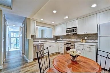 Totally remodeled Studio converted to a 1 bedroom. Enjoy Resort Style Living in this beautiful sunny location overlooking greenbelt, trees, boat slips and walking bridge to shops, restaurants, movie theatre & more!! A serene view of Lighted Bridge at night from your balcony. A short walk or bike to Seal Beach, Naples and Belmont Shore., makes this the perfect location to enjoy all Beach Living has to offer. Marina Pacifica Complex is located on Alamitos Bay, on approx. 18 acres with 6 pools 6, jacuzzi's, lagoons, fountains, gym, 24 hour Guard Gated entry.