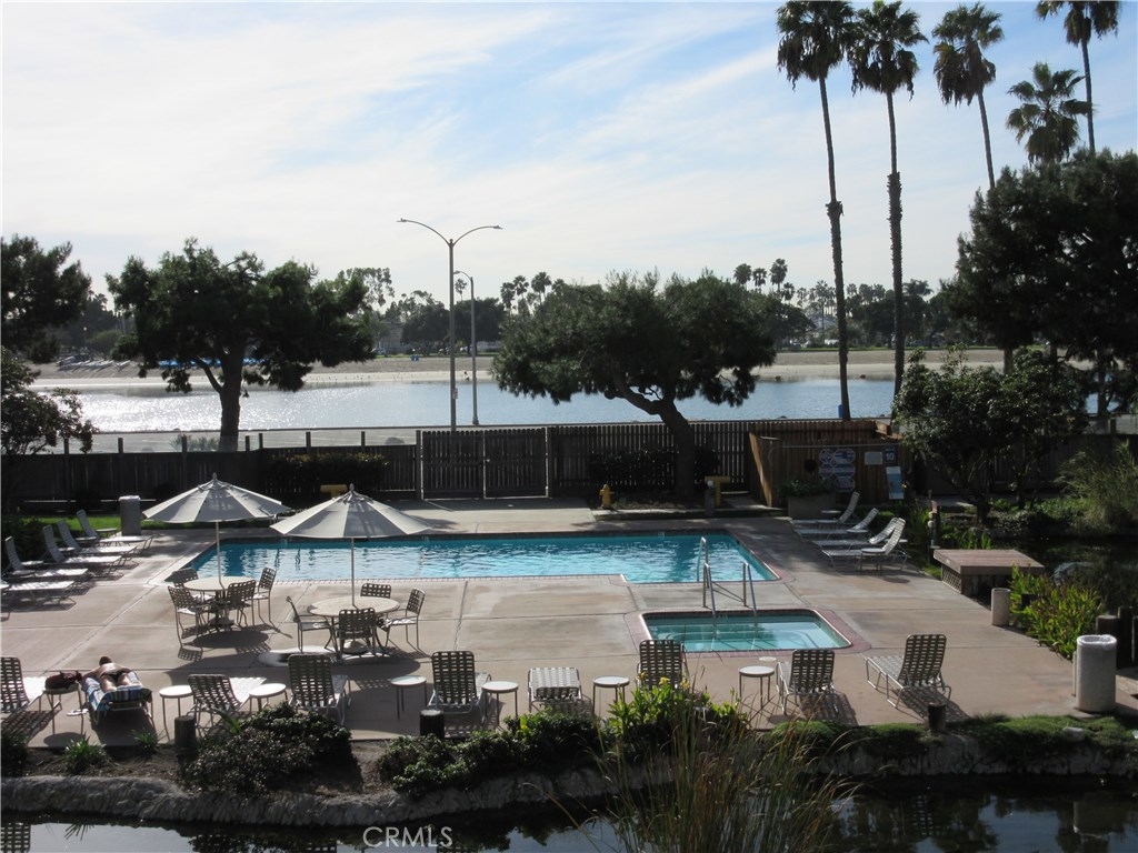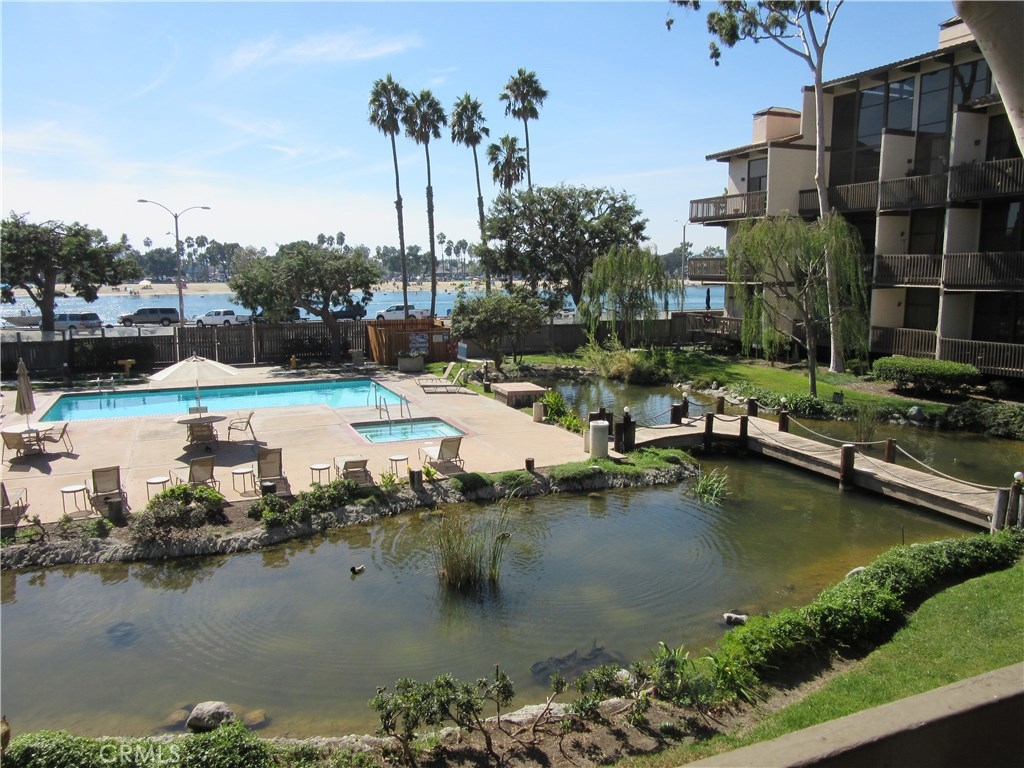 One of the best "Water View" locations in Marina Pacifica!! This 2 bedroom, 2.5 bathroom faces directly towards Alamitos Bay! Enjoy the beautiful sunsets overlooking the pool, lagoons, fountains and Mother's Beach. Features include 2 fireplaces, updated kitchen, remodeled shower in 2nd bedroom, a large balcony off the living room & additional balcony off the master bedroom with direct access to the pool & jacuzzi. Amenities include 6 pools, 6 jacuzzi's, boat slips for lease, fountains, lagoons on apox. 18 acres. 24 hour guard gated entrance. Marina Pacifica is a short stroll or bike to Seal Beach, Naples, Belmont Shore. a beautiful walking bridge takes you over the water to Great restaurants, grocery, Barnes & Noble, movie theatre and so much more!!