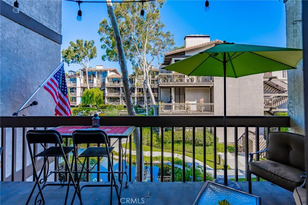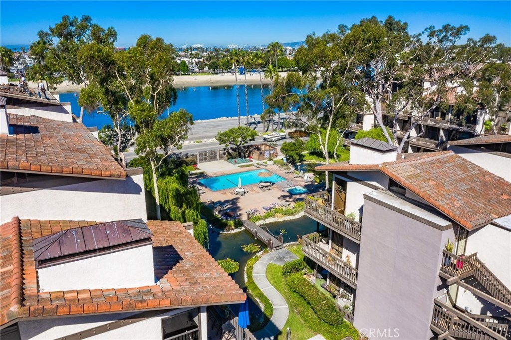 Enjoy paradise in this Marina Pacific picture perfect, one-bedroom, second floor, resort-style residence. Amazing views from the private balcony include Alamitos Bay, a majestic lagoon including a serine water feature, pool, and spa. Inside the open floor plan unit, upgraded beautiful hardwood flooring will be on display, recessed lighting, granite counter tops, tile backsplash and spacious kitchen cabinets. The sunken living space is complete with a gas fireplace. Tastefully hidden, a built in, full-size Murphy bed will be found. The bedroom which includes a spacious closet designed with built in shelving offers a roomful of natural light. The newly renovated bathroom is spa-like. The fabulous stone and tile work is proudly shown off by the seamless shower door. The in-home washer/dryer is located in a closet which provides additional storage space. Included in the asking price, this condo includes the washer, dryer, and all kitchen appliances. For those that are interested, furniture may be purchased. As if it couldn’t get better, this perfectly located condo is in close proximity to the newly constructed 2nd and PCH shopping center, gourmet food market and deli, an array of dining options and freeway close all at the same time! This private resort awaits!