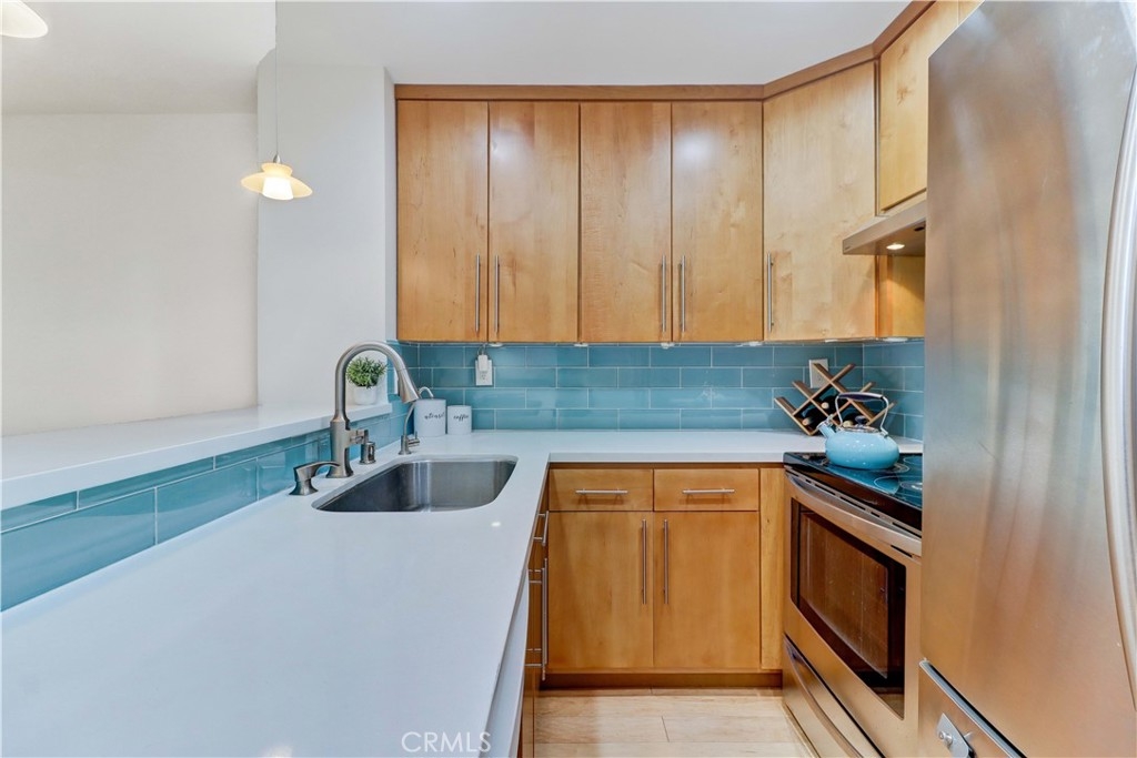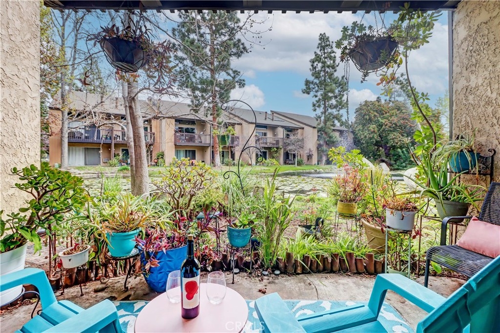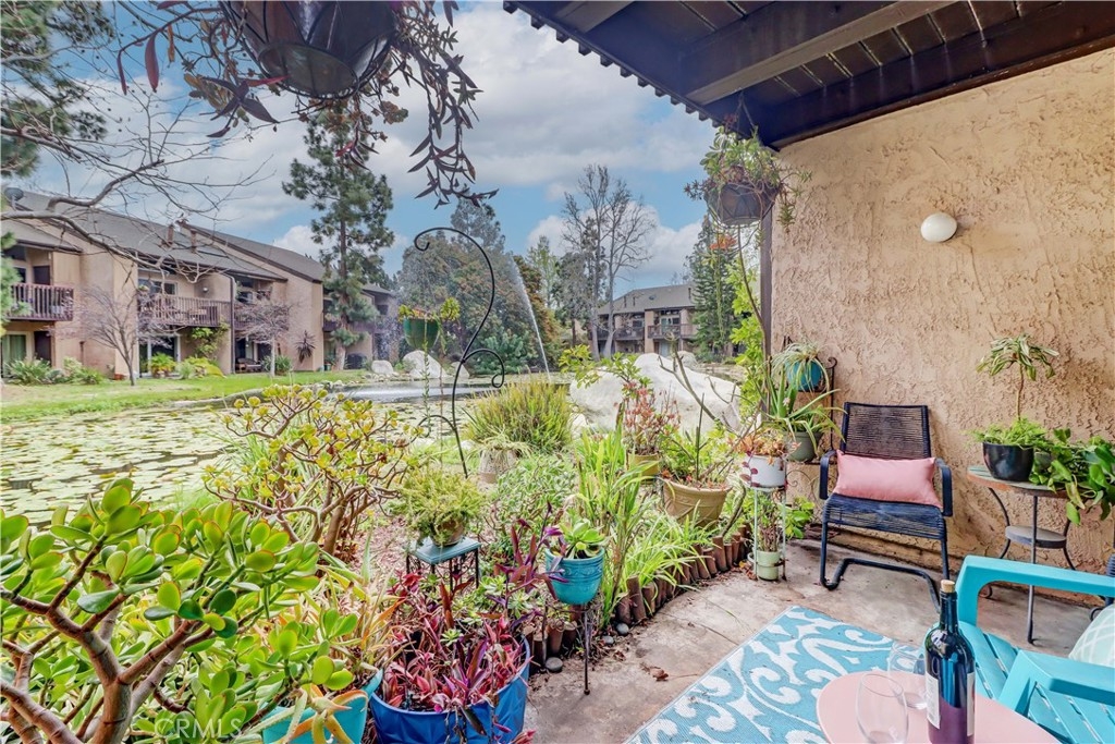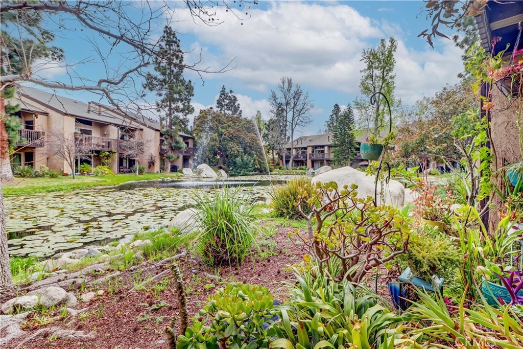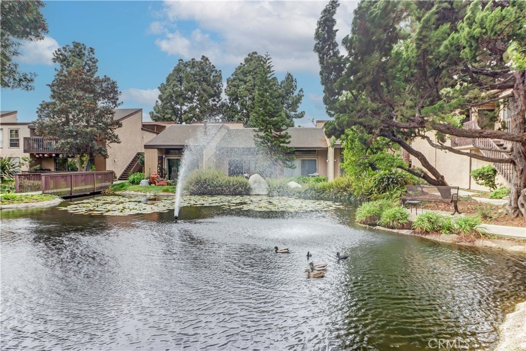VA APPROVED!!! Gorgeous lake and fountain views! Private waterfront garden patio! Extra-large one-story unit! Inside laundry! Enjoy the view of the water, the fountains and fun wildlife (resident geese, ducks, birds, fish, Koi, turtles, butterflies+++….) from almost every room in this super cute, beautifully remodeled condo at “The Lakes”, one of Long Beach’s most popular condo communities! The unit is light, bright and cheerful and has a fantastic open floor plan. The kitchen is custom and boasts white Quartz counters, lovely blue glass backsplash, an extra-large stainless sink, soft close wood cabinets, upgraded fixtures, stainless stove and refrigerator, and a high-end (expensive!!) drinking water purifying system. Extra cabinets and storage are built in to the island, so you have storage on both sides! Custom overhead above bar lighting and a beautiful chandelier above the dining area bring a fun design element to the space. Floor-to-ceiling sliders frame the view from the huge living room and lead to the private patio. Enjoy a glass of wine, a cup of tea, grow your favorite herbs? The possibilities are endless!!! The remodeled bathroom is lovely and has an extra deep jacuzzi tub and matching blue glass surround. There is a very large hall closet which opens on both sides for convenience and the inside laundry is a big deal – most of the units don’t have it. Lastly, there is a very good-sized bedroom which also has a lake and fountain view! The unit comes with nearby deeded covered parking and storage. This gated pet friendly complex (four pets, no size limit) is known for its lush landscaping (over 10 acres!!), super convenient location (near lots of shopping and restaurants) and great amenities. There is a gym, sauna, pools, tennis courts, pool room, table tennis, gathering areas – it’s literally an oasis in the city! A bike path to the beach is nearby and El Dorado Park is within walking distance. All this and great schools, too!!!