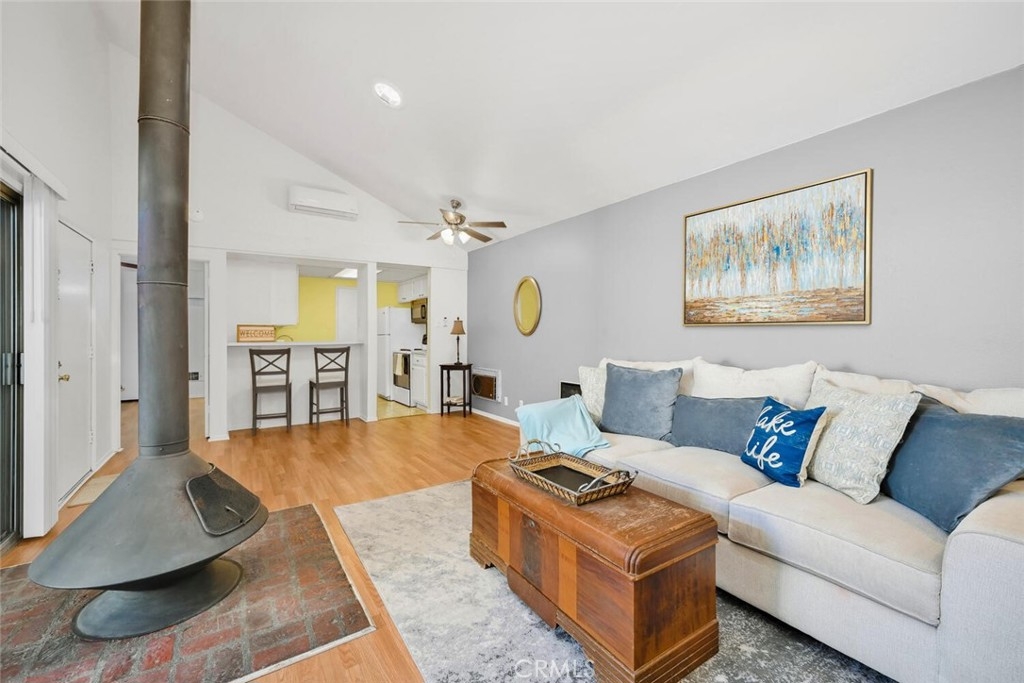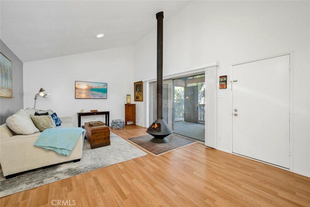 Welcome Home!.... to the beautiful and serene El Dorado Lakes community. This end-unit 1B/1B Atrium condo is situated in a quiet and secluded part of the complex, enjoys one shared wall and no one above or below you. Laminate flooring greets you upon entering the condo as well as smooth scraped ceilings through out the unit. The large living room has vaulted ceilings, a mini-split A/C system, a Swedish wood-burning fireplace, solar tubes that add natural light and a new ceiling fan. The bright and cheery kitchen with matching backsplash comes equipped with all appliances including a new dishwasher, new sink and hardware and a large pantry adjacent to the kitchen. The very large single bedroom has ample closet space and a large slider to the patio. The designated covered parking space is just below the unit, very convenient. As a resident of the lakes you will get to enjoy the beautiful walking paths surrounded by the lakes and flora, an array of wildlife from geese to ducks and wild birds of all sorts ( heron/cormorant...) to turtles, frogs and beautiful Koi. It also includes two swimming pools, tennis courts, a clubhouse with games and a gym. The Lakes is also located within walking distance to El Dorado Park/Nature Park, and about a 20 minute drive to the beach and great freeway access.