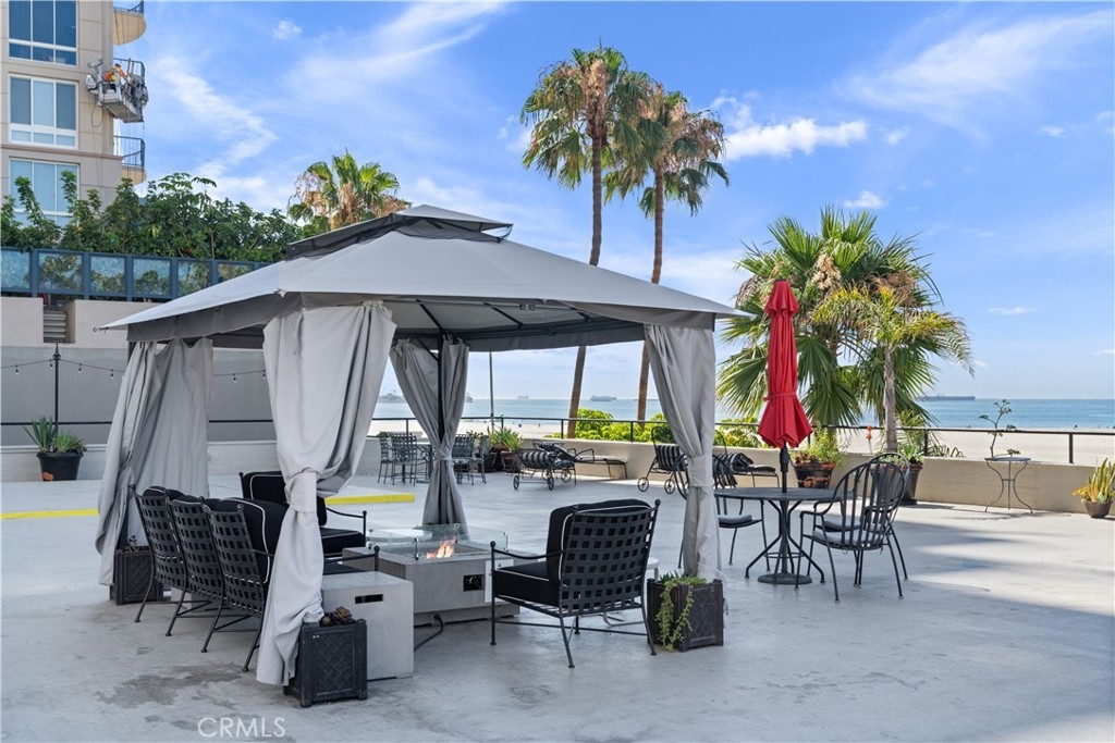 Experience timeless elegance and coastal sophistication at the beautiful iconic Villa Riviera, one of Long Beach’s most celebrated historic landmarks. This spacious 702 sq ft studio (Unit #306) seamlessly blends old-world charm with modern comfort, featuring high ceilings, original hardwood floors, coved plaster walls, and French-mullioned windows that fill the space with natural light. The open floor plan offers a generous living and dining area. The kitchen offers plenty of cabinets and a closet in the dining room which can be used as a pantry. The bathroom has original tile with 1920s architectural character. Enjoy city and ocean views on the sundeck, just steps from the sand, Shoreline Village, East Village Arts District, and Long Beach’s vibrant downtown, with a very high walk score. The HOA dues include all utilities—electricity, gas, water, internet, and cable TV—offering exceptional value. This property also qualifies for the Mills Act, providing substantial annual property tax savings. Residents enjoy secure entry, laundry facilities, and easy access to local dining, entertainment, and the coastal bike path. Parking available nearby; seller to provide six months of off-site parking to provide time to obtain on-site parking.