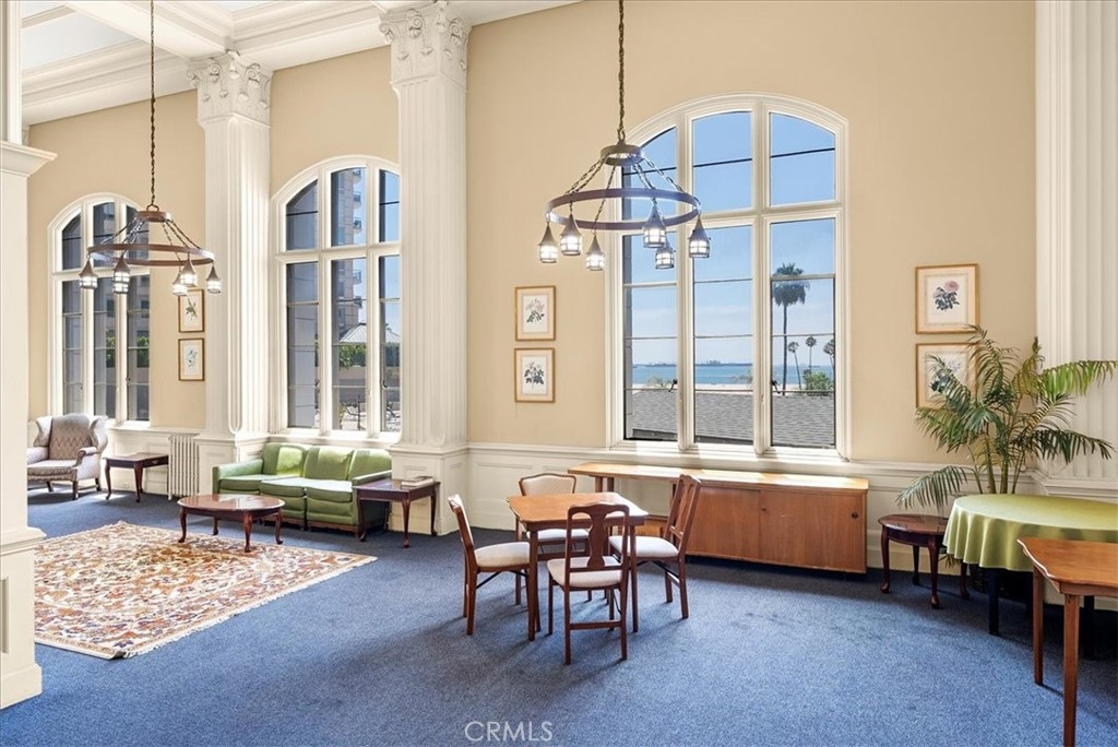 Downtown Long Beach is magical, including the beautiful, exquisite, and iconic Villa Rivera!!! Unit 510 is a charming, oversized corner unit with 360-degree views of the ocean, mountains, city, or beach from every room. The one-bedroom home offers hardwood flooring, coved ceilings, bay windows, large walk-in closet, and dressing area with added storage. Bright and sunny art deco bathroom with updated tile flooring and vanity area. The galley kitchen is also recently updated with newer tile flooring, refrigerator and paint!! Villa Rivera has so much to offer their residents! Grand ballroom with kitchen for catering, spectacular outdoor double deck sitting on the sand and overlooking the beach and waterfront, with BBQ and firepit. The building has a guest suite for overnight visitors. HOA monthly fees cover not only the maintenance of this beautiful property, but it also covers ALL UTILITIES – gas electricity, hot water, heat, basic cable, and internet. Location cannot be beat – situated in the heart of vibrant downtown and steps away from seven miles of the walking, running, and biking path. Walking distance to all the shops, art district, restaurants, Pacific Terrace Theater and Performing Arts Center. Villa Rivera was built in 1928 by renowned architect Richard King and enjoys the property tax benefits of the Mills Act contract with the City of Long Beach!! (Cost savings is approx. $400-$500/month) There is indoor and outdoor parking leased to the residents at a monthly fee. Villa Rivera is FHA and VA approved!!