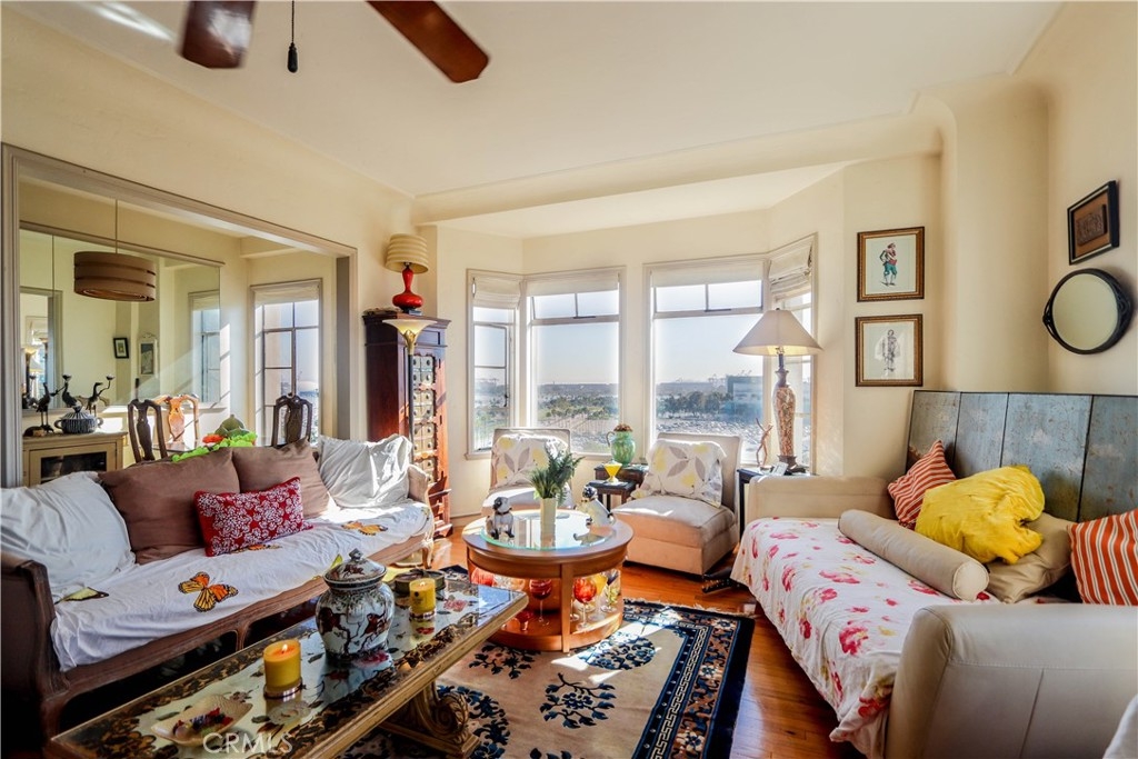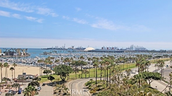 Sweeping Views of the Ocean, Queen Mary & Marina & City Highly desired Corner. The Villa Riviera is one of the City of Long Beach's most recognized & revered landmarks with French Chateau-Nouveau Style is designated on the National Register of Historic Places This unit offers new features of modern subway glass w/stone backsplash w accent lights & updated cabinets in the galley kitchen. Beautiful Hardwood floors, plaster & covered ceilings French mullioned windows remind you of the era in which it was built. The bathroom has been expanded & updates have been added including a period signature Pedestal sink. Unit is complete with appliances washer & dryer. Wonderful closet space. You won't want to miss this one! Dues include all utilities that means, gas, lights and all electrical, heat, water, hot water, even CABLE & Parking can be acquired through the HOA Building Amenities include Ballroom and Common Area facility w Large Community Deck with BBQ Guest Suite for your out of town guests ... This unit has The Mills Act and the new owner will inherit the taxes assigned to this unit (Under $3000 per year) The surrounding community offers so many venues, Shoreline Village, Aquarium of The Pacific, many Shops and Restaurants, Queen Mary, The LB Performing Arts is a stroll away, Catalina Express, 7 mile beach bike and pedestrian path and much much more!
