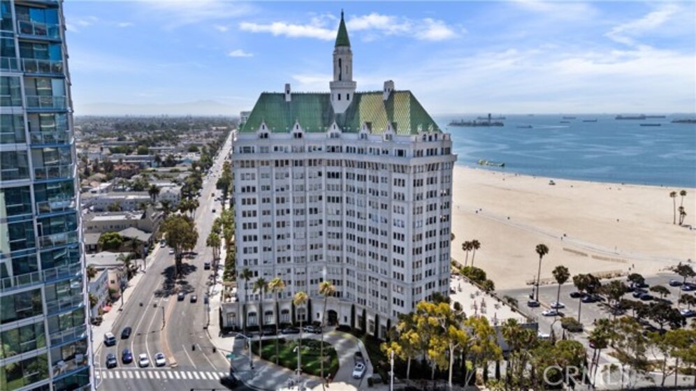 Experience timeless elegance and coastal sophistication at the beautiful iconic Villa Riviera, one of Long Beach’s most celebrated historic landmarks. This spacious 702 sq ft studio (Unit #306) seamlessly blends old-world charm with modern comfort, featuring high ceilings, original hardwood floors, coved plaster walls, and French-mullioned windows that fill the space with natural light. The open floor plan offers a generous living and dining area. The kitchen offers plenty of cabinets and a closet in the dining room which can be used as a pantry. The bathroom has original tile with 1920s architectural character. Enjoy city and ocean views on the sundeck, just steps from the sand, Shoreline Village, East Village Arts District, and Long Beach’s vibrant downtown. The HOA dues include all utilities—electricity, gas, water, internet, and cable TV—offering exceptional value. This property also qualifies for the Mills Act, providing substantial annual property tax savings. Residents enjoy secure entry, laundry facilities, and easy access to local dining, entertainment, and the coastal bike path. Parking available nearby; seller to provide one year of off-site parking.