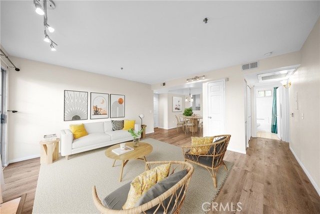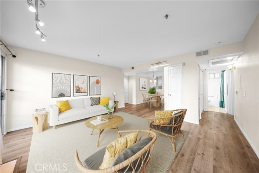 Lovely 2-bedroom, 2-bathroom condo featuring 2 dedicated tandem parking spaces, in-unit full-size laundry, and central heating and air conditioning. Designed with a thoughtful floor plan, this home offers beautiful vinyl plank flooring throughout and an open-concept living room with a gas fireplace, modern light fixtures, and double sliding doors that open to a private patio. The dining area features an architectural ceiling detail and a convenient pass-through to the kitchen. The updated and functional kitchen includes ample cabinetry, quartz countertops, an oversized stainless-steel sink and appliances, a pantry, and a cozy breakfast nook overlooking the tranquil courtyard. The primary suite features a large walk-in closet and a beautiful en-suite bathroom with a quartz vanity, shower/tub combo, and tile flooring. The nicely sized second bedroom offers pleasant courtyard views, a double-slider closet, and convenient access to additional hallway storage and a remodeled full bathroom. Additional highlights include extra storage space, a pet-friendly and controlled access building, a lushly landscaped courtyard with a fountain, a rooftop deck perfect for enjoying California sunsets and Fourth of July fireworks, a community room, and secure bike parking. Located in the heart of downtown Long Beach, you’ll be just moments from Pine Avenue, Shoreline Village, The Pike, the Aquarium of the Pacific, the Metro, and enjoy easy freeway access for commuting. Monthly HOA dues of $434 include water, trash, and sewer. Photos have been virtually staged. Building is VA approved. ****This home may qualify for special financing and a $20,000 grant - speak to your lender or Realtor to learn more.****
