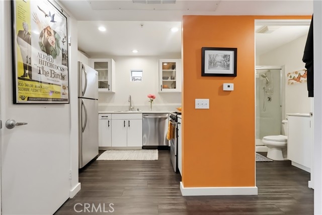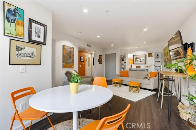 Welcome to The Lofts on 4th — East Village Living at its Best Discover your urban oasis at The Lofts on 4th, perfectly situated in the vibrant East Village. This lower-level loft offers the ideal blend of cozy comfort and modern design. Step inside to find a thoughtfully designed layout that makes smart use of space, featuring a nice sized living area with beautiful French doors that open onto a charming private patio, seamlessly blending indoor and outdoor living.Enjoy the rich, dark commercial-grade vinyl flooring throughout, complemented by recessed lighting that highlights your favorite artwork and adds a touch of sophistication. The kitchen, bedroom, and bathroom are all designed for comfort and functionality, and you’ll appreciate the convenience of a stackable washer and dryer.Just four blocks from the beach, this quiet interior unit is perfectly tucked away from the lively downtown energy; offering peace and privacy while keeping you just steps from the best restaurants, shops, and entertainment. The serene common area features palm trees and foliage in oversized planters, bringing a refreshing touch of greenery to the modern surroundings.Head up to the rooftop deck for summer barbecues and take in beautiful views that stretch for miles. From here, you’re a short stroll to the scenic shoreline bike path and minutes from Retro Row and downtown’s eclectic mix of eateries, boutiques, and nightlife.Opportunities to own in The Lofts on 4th are rare; come experience stylish coastal living where city energy meets seaside tranquility.