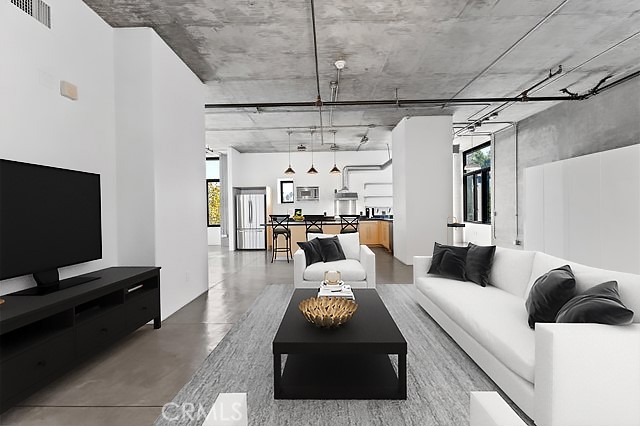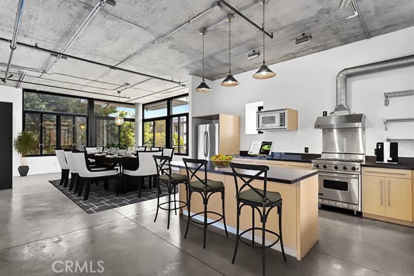 Experience urban sophistication in this stunning corner loft at the iconic Temple Lofts in Long Beach. Bathed in natural light from expansive floor-to-ceiling windows, this east- and north-facing residence boasts two private balconies with city views. The polished concrete floors, soaring ceilings, and open-concept layout create a seamless blend of industrial character and modern comfort. The sleek chef’s kitchen is equipped with stainless steel appliances including a Viking range and hood, Bosch dishwasher, black granite countertops, and a freestanding island that offers additional dining space and discreet storage. Thoughtful details throughout include custom modern lighting and built-in cabinetry that doubles as a room divider, keeping the sleeping area partially secluded while maintaining an open, airy flow. The flexible layout allows for multiple configurations of living, dining, and workspaces tailored to your lifestyle. Temple Lofts is one of Long Beach’s most distinguished residential communities, combining historic 1920s charm with contemporary amenities. Residents enjoy a grand Art Deco-inspired lobby, a fitness center, a resident lounge, and a community deck featuring built-in BBQs, and a fire pit. Additional conveniences include on-site management, secured guest parking, a private storage unit, and one assigned parking space. Beautifully maintained, secure, and peaceful, this exceptional home offers timeless style and comfort in the heart of the city.