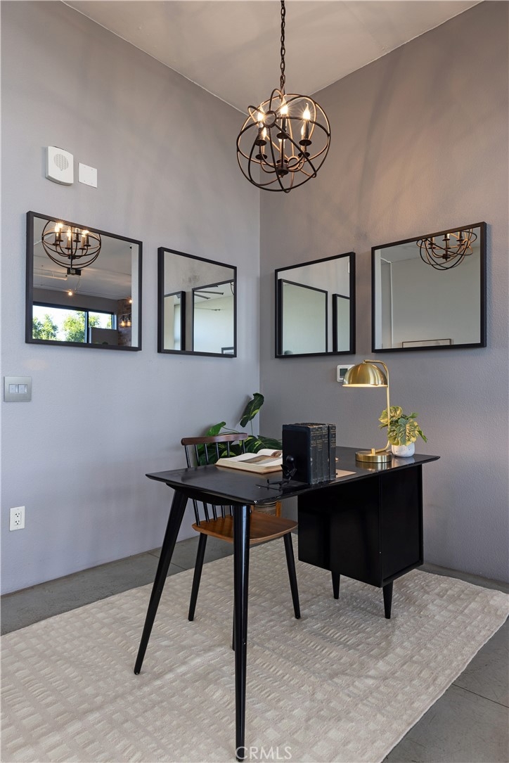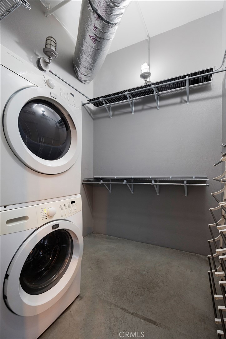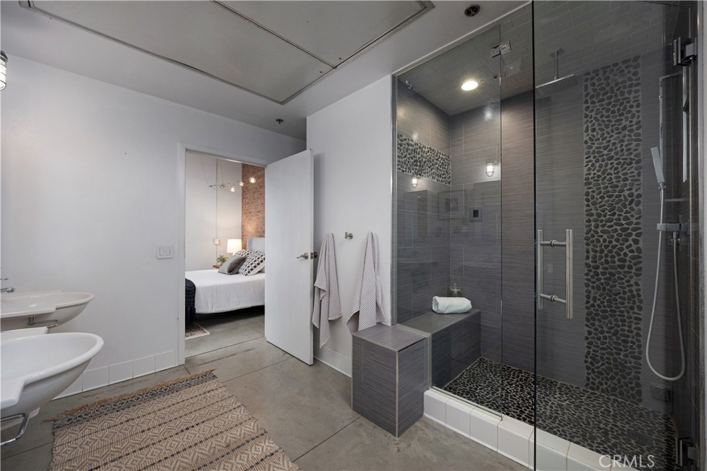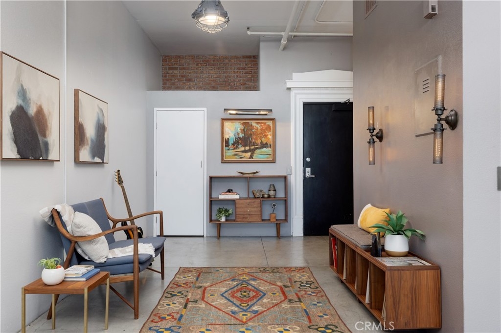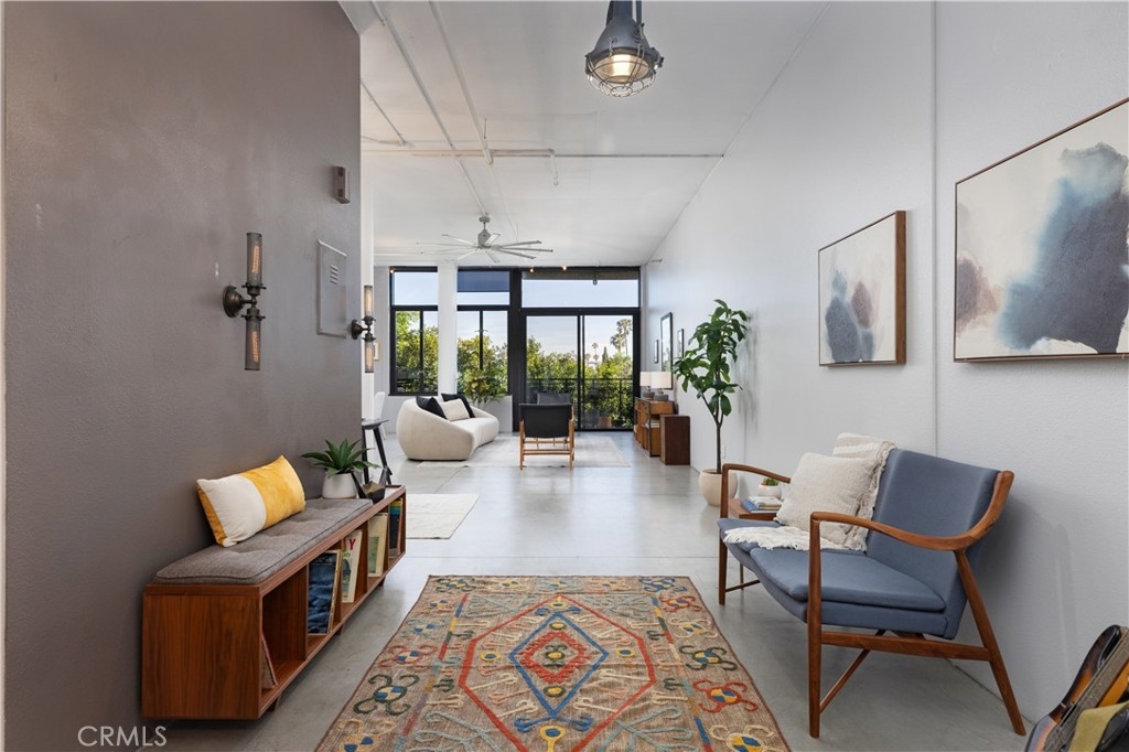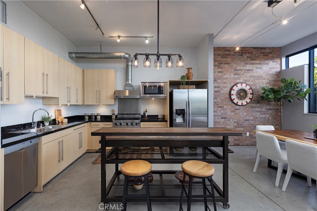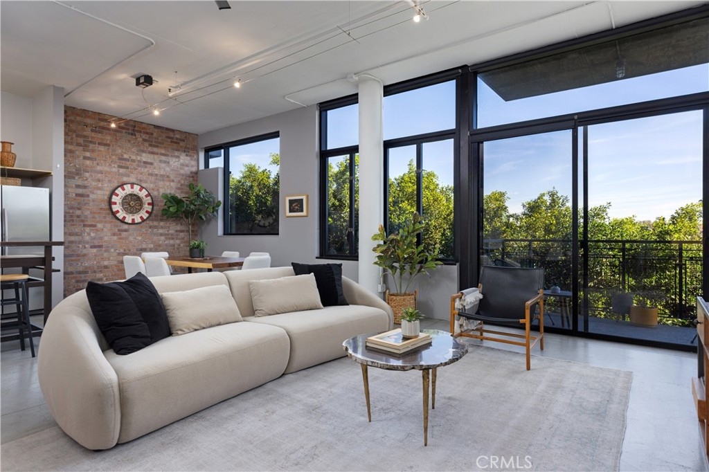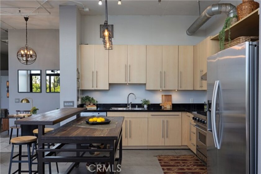 Welcome to Unit 421 at the iconic Temple Lofts, where historic character meets modern loft living in the heart of downtown Long Beach. This striking east coast–inspired loft features soaring concrete ceilings, polished concrete floors, exposed ductwork, and dramatic floor-to-ceiling windows that fill the space with natural light. The open concept floor plan creates a seamless flow between living, dining, and kitchen areas. The kitchen is well appointed with stainless steel Viking and Bosch appliances, granite countertops, and a custom-built island with seating—perfect for everyday living or entertaining. A custom brick accent wall adds warmth and character to the industrial design. The remodeled bathroom offers a spa-like feel with a two-person steam shower, while the spacious laundry room provides abundant storage. A thoughtfully separated bedroom area adds privacy while maintaining the open loft aesthetic. Step outside to your private balcony and enjoy views toward Signal Hill and Los Angeles. Temple Lofts offers exceptional amenities including secured parking, a fitness center, spa, BBQ area, guest parking, and a community clubhouse. This unit also includes one assigned parking space and a private storage cage. Ideally located near the best of downtown Long Beach dining, shopping, entertainment, and public transportation.