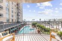 Welcome to The Pacific! This extravagant high rise condo tower offers the perfect blend of luxury and coastal living. You will see and feel the difference upon entering the luxury hotel-like entry and foyer in the building. The property’s location is the closest building to Downtown Long Beach that has DIRECT ACCESS to the sand and miles of hiking and biking trails along the beachfront. Situated on the second floor, this beautiful condo features elegant marble flooring, new paint, updated bathrooms and granite counter tops in the kitchen with stainless steel appliances. Natural light fills the space, creating a bright and inviting atmosphere. Feel the cool ocean breeze as you relax on the balcony watching the gorgeous sunsets overlooking the Marina and the Queen Mary. The spacious primary bedroom showcases large windows bringing in plenty of natural light, three separate closets with sliding mirror doors that leads into the bathroom area with dual sinks, separate glassed in shower, a large tub and a private toilet room. Additional conveniences include, central AC, a laundry area, two designated parking spaces with storage. Residents are welcomed with exclusive amenities and services such as a 24- hour concierge at the front desk, banquet facility/ meeting area, gym adjacent to the 24/7 heated swimming pool and spa, and a private beach club with direct access to the beach plus association-maintained BBQ’s. Enjoy watching the Long Beach Grand Prix right from your balcony! An ideal location with many galleries, theaters, entertainment, parks within walking distance. You can also walk over to Shoreline Village where you can experience great dining and weekly entertainment alongside marina views.