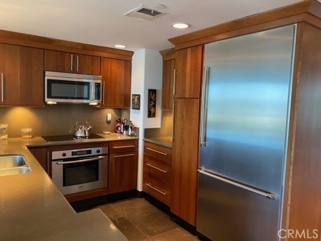 Exquisite one of a kind condo, the only one like it the whole building with 1,122 sq. ft. This stunning unit offers panoramic ocean, harbor, and city views. The open floor plan is enhanced with hardwood floors throughout, new double-glazed balcony doors and bedroom window. Spacious living room features, Murphy bed with built-in maple bookcase, custom electric blinds, surround sound system, flat screen TV in custom wall nook and in ceiling lighting. Gourmet kitchen includes custom maple cabinets, cesar stone countertops, bosch stove, oven, microwave and dishwasher. Built-in 36 inch Miele Refrigerator and Italian Porcelain Tile. Stunning bathroom is enhanced with Italian glass tile walls, upgraded Italian Porcelain tile, low flow Koehler Flush Toilet, custom room heater and oversized double shower. Exceptionally large bedroom includes dual closets with custom shelving, lights and ceiling fan. Stereo sound system throughout, built-in custom bookcase in hallway, full size stacked washer/ dryer, central A.C., 9 ft. ceilings, and extensive storage adjacent to double parking spaces all add a touch of elegance to this light and airy property.