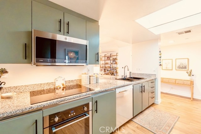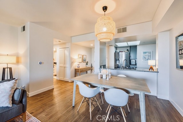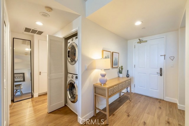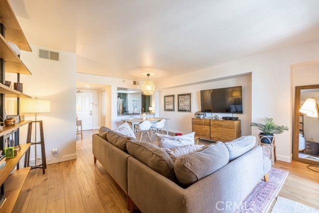 The Pacific is the most desired luxury downtown high-rise condominiums on Ocean Blvd. This large 1-bedroom, 1-bathroom 6th floor unit has impressive city and mountain views from every room. Including the 2 balconies. The resort style amenities and beachfront location situated on the sand with direct walking access to the beach, providing dramatic sunsets, ocean breeze, beach/city lights, views to Downtown and is close to the Marina, the downtown entertainment and The Queen Mary. The spacious living area has new hardwood floor throughout, with a dining area and a space that could be an office work area. The kitchen has custom wood cabinetry, granite counters and stainless-steel appliances with a new stainless-steel refrigerator as part of the sale. The large bedroom has a walk-in closet and a second balcony with a spectacular view of downtown and the Hollywood Hills Mountains. The bathroom w/shower/spa tub combo and new water saving toilet is convenient for guests as well as the bedroom. Inside stackable washer/dryer laundry has great access and is included with the sale. Hot water heater, and HVAC central heat/cool adds to the homes comfort. HOA provides Free high-speed internet/cable TV, water and trash pick-up. The unit has 2 assigned parking spaces with full oversized storage units. The Pacific with limited security key fob entrance and 24/7 staff front desk has the feel of a 5-star hotel, and yet it has the comfort of a private home. Luxury Lobby provides residents with an impressive entry to the building common areas. Easy access to the gym, oversized pool and spa, outdoor BBQ areas cleaned by staff daily, fire pit, common area kitchen and oversized banquet room. Onsite management, 3 full time maintenance/engineers, 2 full time common area janitors and 24 hours front desk staff provide each resident with the personal service they deserve. 2 bicycle storage rooms with direct access to the beach jogging/walking and bike paths. Walking distance to downtown, marina, Shoreline Village, restaurants, theaters, shopping, Blue Line Metro and City Buses. This luxury condominium is an impressive primary home or a fabulous 2nd vacation beach house. Experience beach living at its finest!