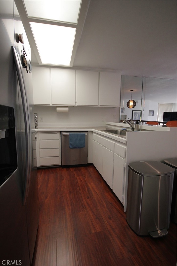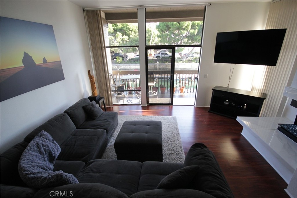 PRICE IMPROVEMENT!! Key 1! Enjoy the Cool Ocean Breezes from your private wrap around waterfront balcony of this Resort style condominium. Don't miss this unique One Bedroom & Den model that has been cleverly converted into a functioning two bedroom floor plan! This convenient first floor corner location with its bright morning sun exposure is light and bright and features wall to wall floor to ceiling windows and beautiful engineered hard wood flooring throughout. The spacious bedroom features wall to wall closets with mirrored wardrobe doors and two floor to ceiling windows for lots of light! This property also features inside laundry (washer & dryer included) and 2 covered/assigned garage parking spaces with storage lockers!. Monthly Association dues are $665.00 & $168.00. Marina Pacifica is a 24-hour guard gated waterfront community with 6 pools and spas, a fitness center, clubhouse and 18 acres of manicured, resort-style landscaping. There is an attached Marina and a picturesque footbridge leading to shops, restaurants, theater and grocery store in the Marina Pacifica Mall and the new 2nd & PCH shopping center across the street. Marina Pacifica is just steps to public transportation and offers great walking, biking to nearby Seal Beach, Naples Island and Belmont Shore.