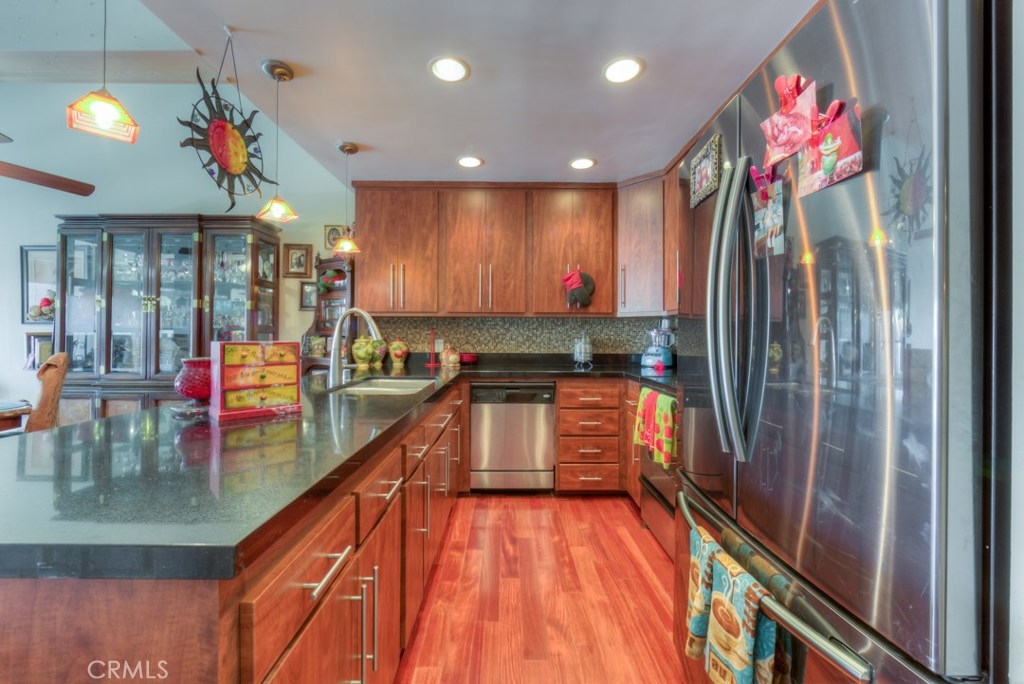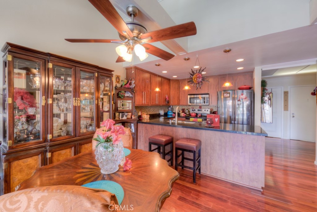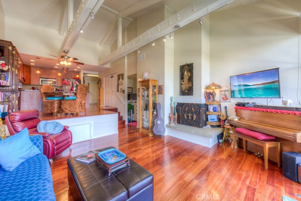 Very desirable, and rarely available, key 1 penthouse-style living awaits you. This spacious top floor home boasts soaring vaulted beamed ceilings, a full suite of stainless steel kitchen appliances, new french door refrigerator, central air conditioning, fireplace and gleaming wood floors all lead you to your own private 18 foot wide balcony. Walk out onto your balcony and enjoy unobstructed views of the canals, marina and fresh ocean breezes while you enjoy morning coffee and evening wine. In the evening you'll have an incredible front row seat as the city lights begin to illuminate. And yes, there's loads of storage under the raised dining room and an additional huge built-in storage unit in front of your parking space This home is located in key 1 which is very close to the private foot bridge leading you to fantastic shopping, world-class dining and night life. Surrounded by swimming pools, koi ponds, boats and water. Come see for yourself why this is a lifestyle you truly deserve. Marina Pacifica is an exclusive gated waterfront community and home to 6 pools, spas, ponds and beautifully landscaped grounds spread over nearly 18 acres. There's a clubhouse with full kitchen and bar that's perfect for entertaining. You'll also enjoy the fitness center with mens' and womens' sauna. The monthly HOA dues pay for 24 hour guarded entry, earthquake, flood & fire insurance, gas, water, sewage, trash and 18 acres of manicured resort-style living. Welcome Home!