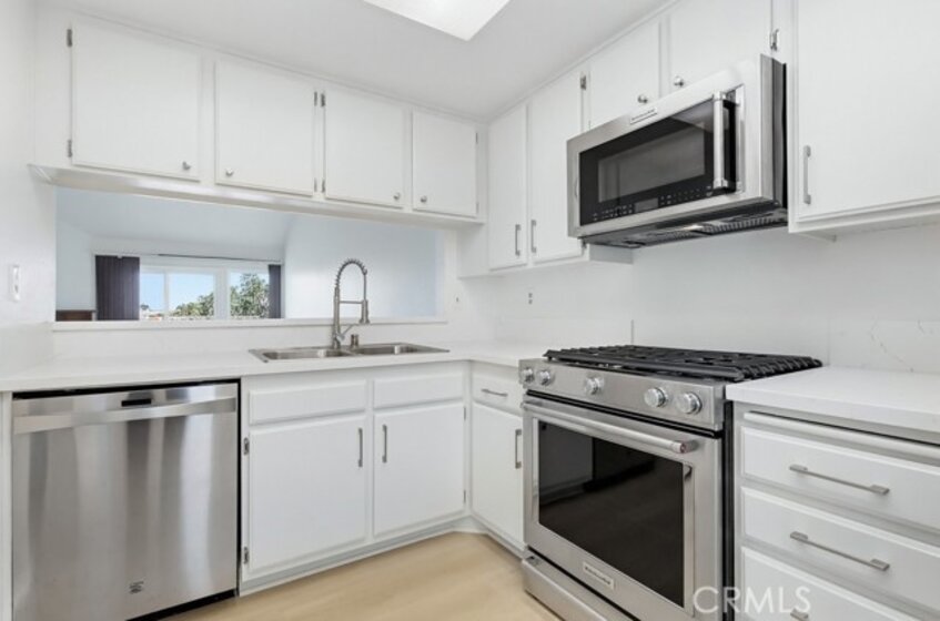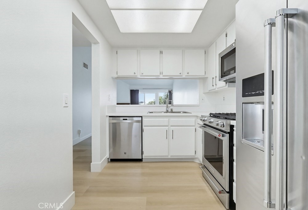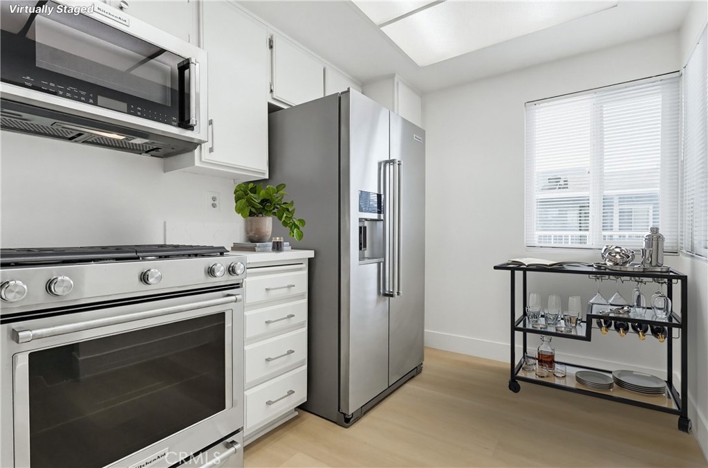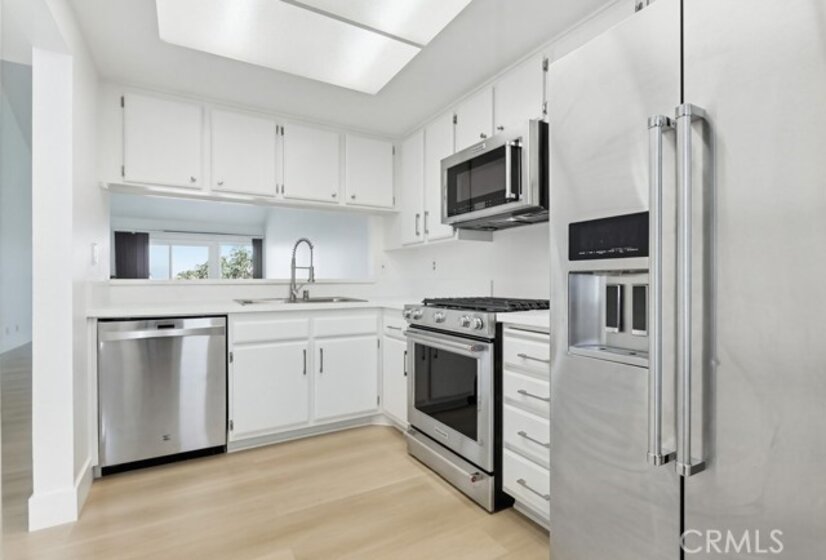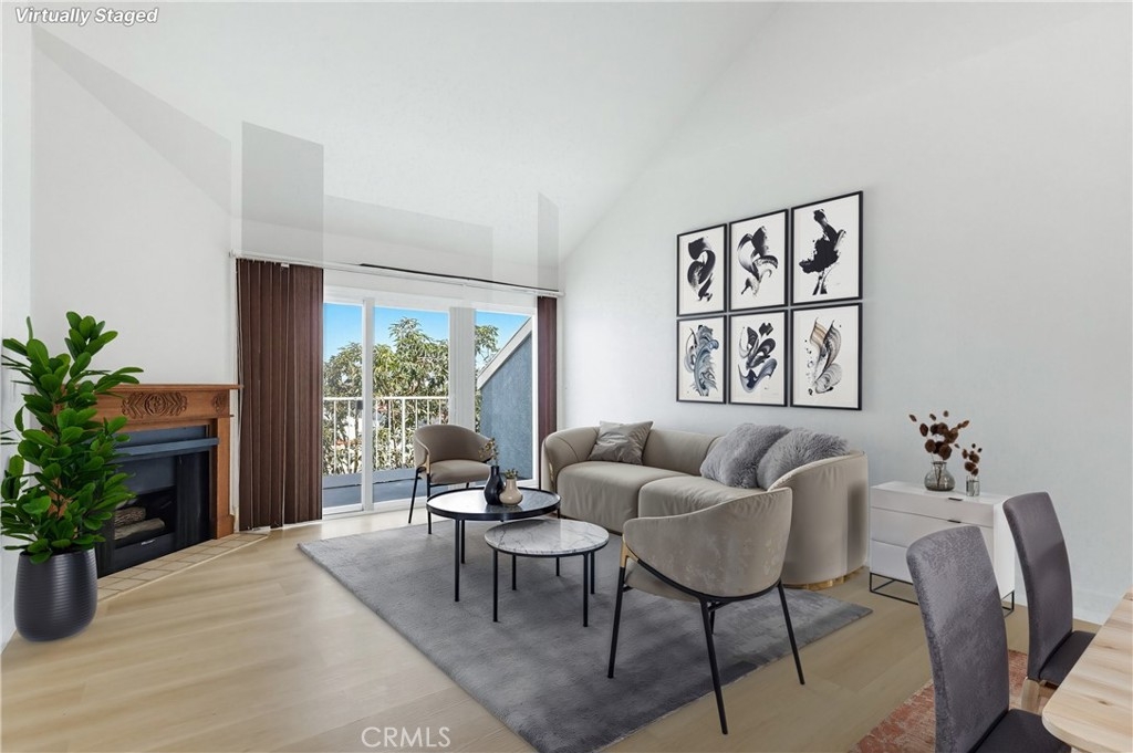 Just blocks from the beach, this beautifully remodeled top-floor unit offers a perfect blend of comfort and style. Residents enjoy the benefit of being within walking distance to the shoreline, making it ideal for those who appreciate coastal living. The unit boasts vaulted ceilings that create an airy, spacious atmosphere. Gleaming hardwood floors run throughout the home, providing a sophisticated touch. A cozy fireplace adds warmth and character to the living area, making it an inviting place to relax. Dual-paned vinyl windows allow for an abundance of natural light, enhancing the bright and open feel of the space. The newly refreshed kitchen is designed for both functionality and style. It features elegant quartz countertops, refinished cabinetry, and high-quality stainless-steel appliances, catering to the needs of any home chef. Each of the spacious bedrooms is complemented by its own well-appointed bathroom. Skylights in the bathrooms fill the rooms with natural light, creating a bright and cheerful environment. Step out onto the private patio to enjoy stunning views, offering a tranquil retreat right at home. This lovely complex is situated in the desirable Alamitos Beach neighborhood and boasts an impressive walk score of 95, highlighting its convenience and accessibility. Common areas include a beautiful pool, an outdoor cooking area, spacious patio, and a club and fitness room, providing residents with a variety of options for recreation and relaxation. Elevator access to all floors from garage and lobby.